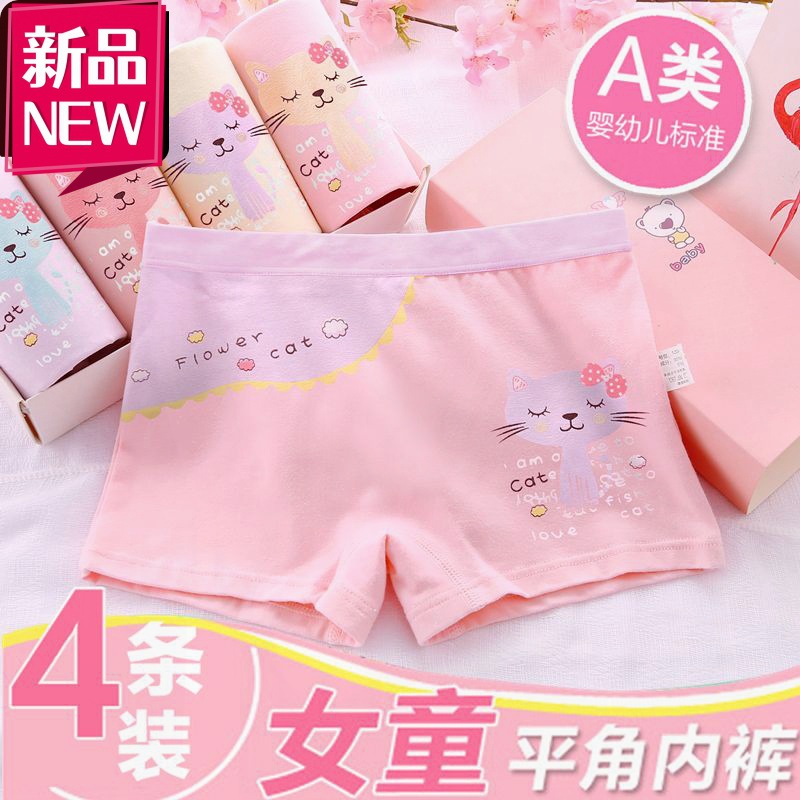 | nameOriginal | Girls' Underwear Pure Cotton Children's Boxer Shorts Class A Baby Middle and Old Children's Four Corner Little Girls Students Don't Pinch Butts |