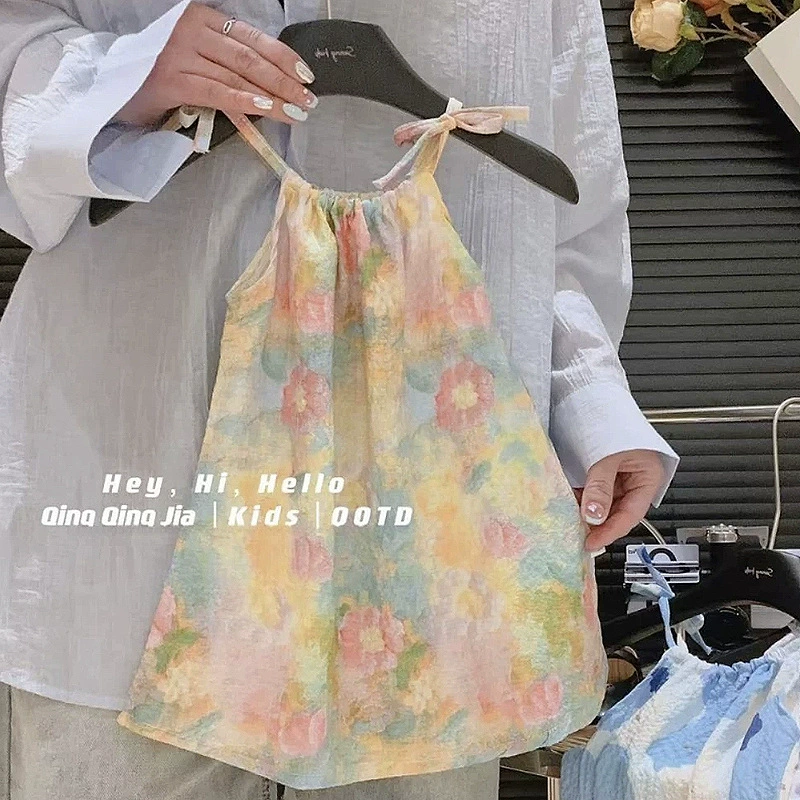 | nameOriginal | Girls vest dress 2024 new style dress fashionable floral princess dress children baby thin skirt suspender skirt |