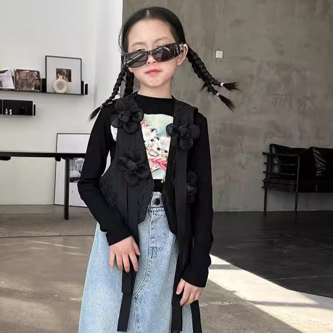 | nameOriginal | Girls' vest Internet celebrity same style spring and summer new ribbon three-dimensional flower design dark fashion popular vest |