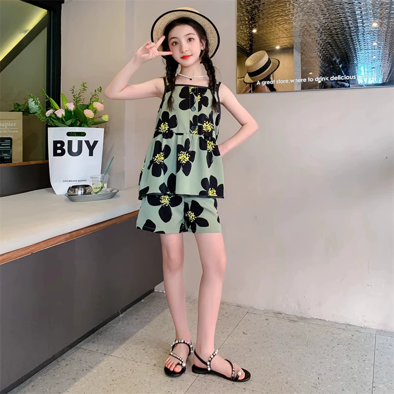 | nameOriginal | Girls vest suit summer 2024 new style children's casual shorts summer two-piece chiffon set for girls |