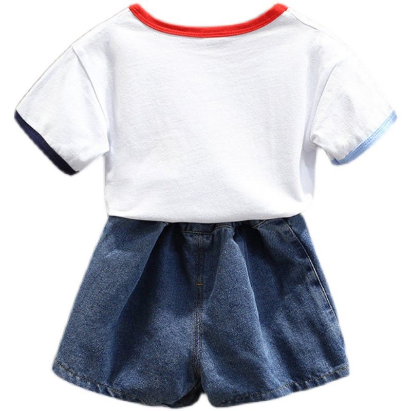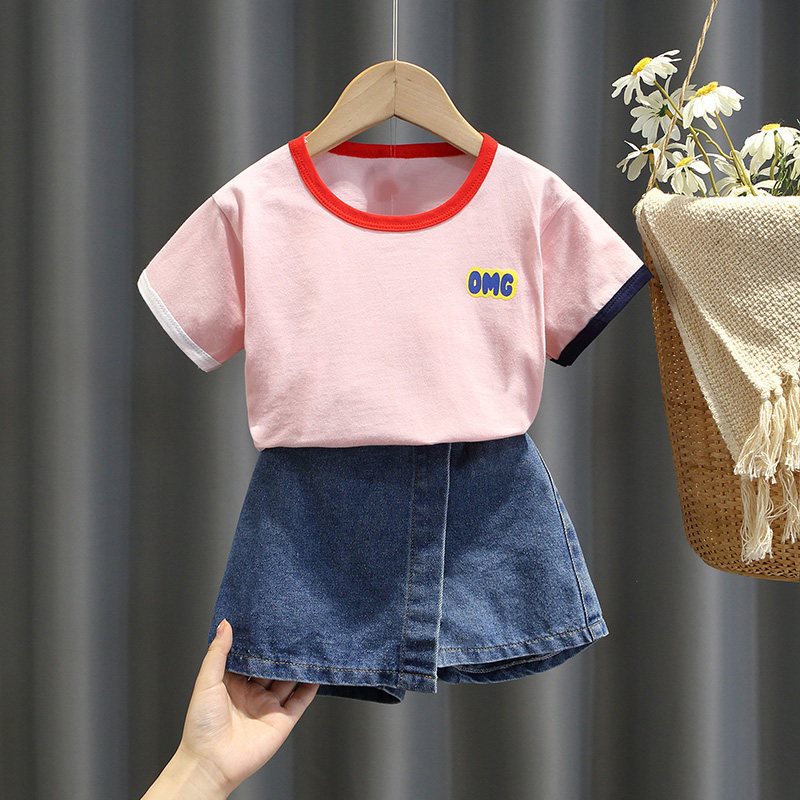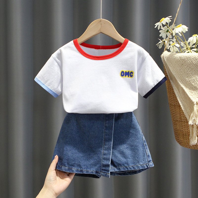 | nameOriginal | Girls' Western-style Denim Skirt Set 2022 Summer Children's Korean A- line Pants Skirt Short-sleeved Top Two-piece Set |