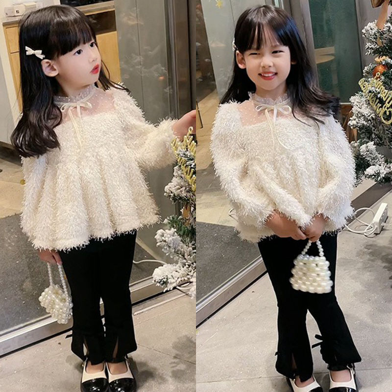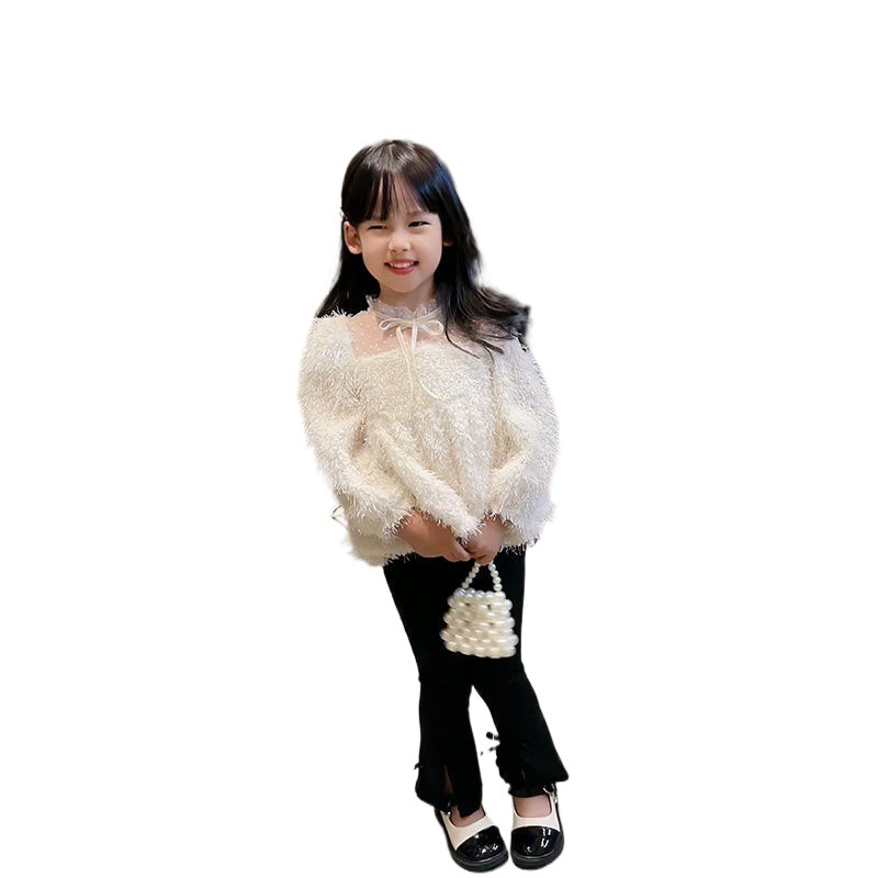 Girls’ Western style white sweater 2024 Spring and Autumn New Korean style children’s baby tassel pullover hollow-out long sleeve top