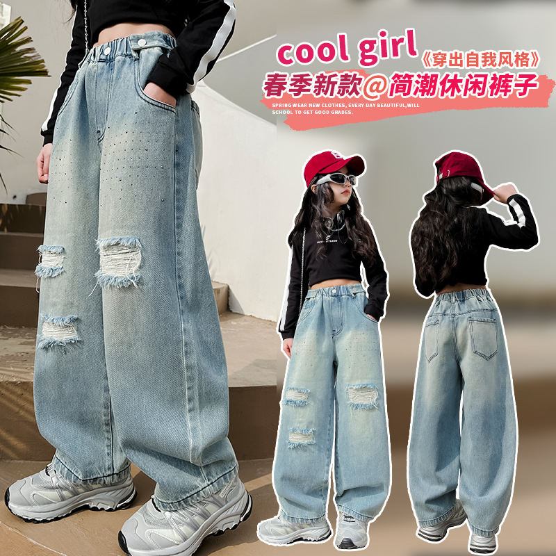 | nameOriginal | Girls' Wide Leg Jeans Junior High School Girls' Spring and Autumn 2024 New Arrival Pants Children's Loose Straight Leg Trendy Pants |