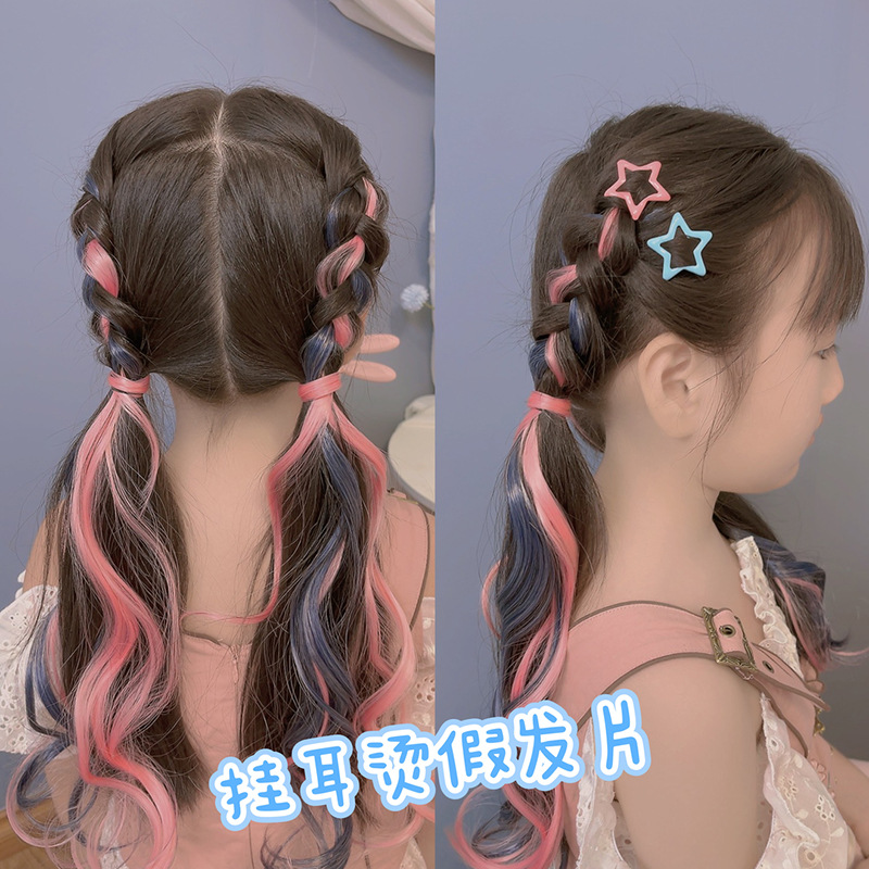 | nameOriginal | Girl's wig hanging ear hair dyeing piece little girl hair extension color wig piece children's sweet cool hair accessories Princess headdress |