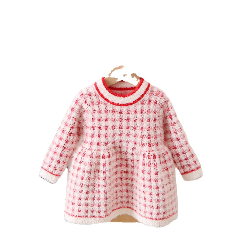 Girl's Winter Clothing Mink Velvet Sweater Princess Dress Baby Girl's Knitted Sweater Baby's Winter Stylish Pullover Skirt