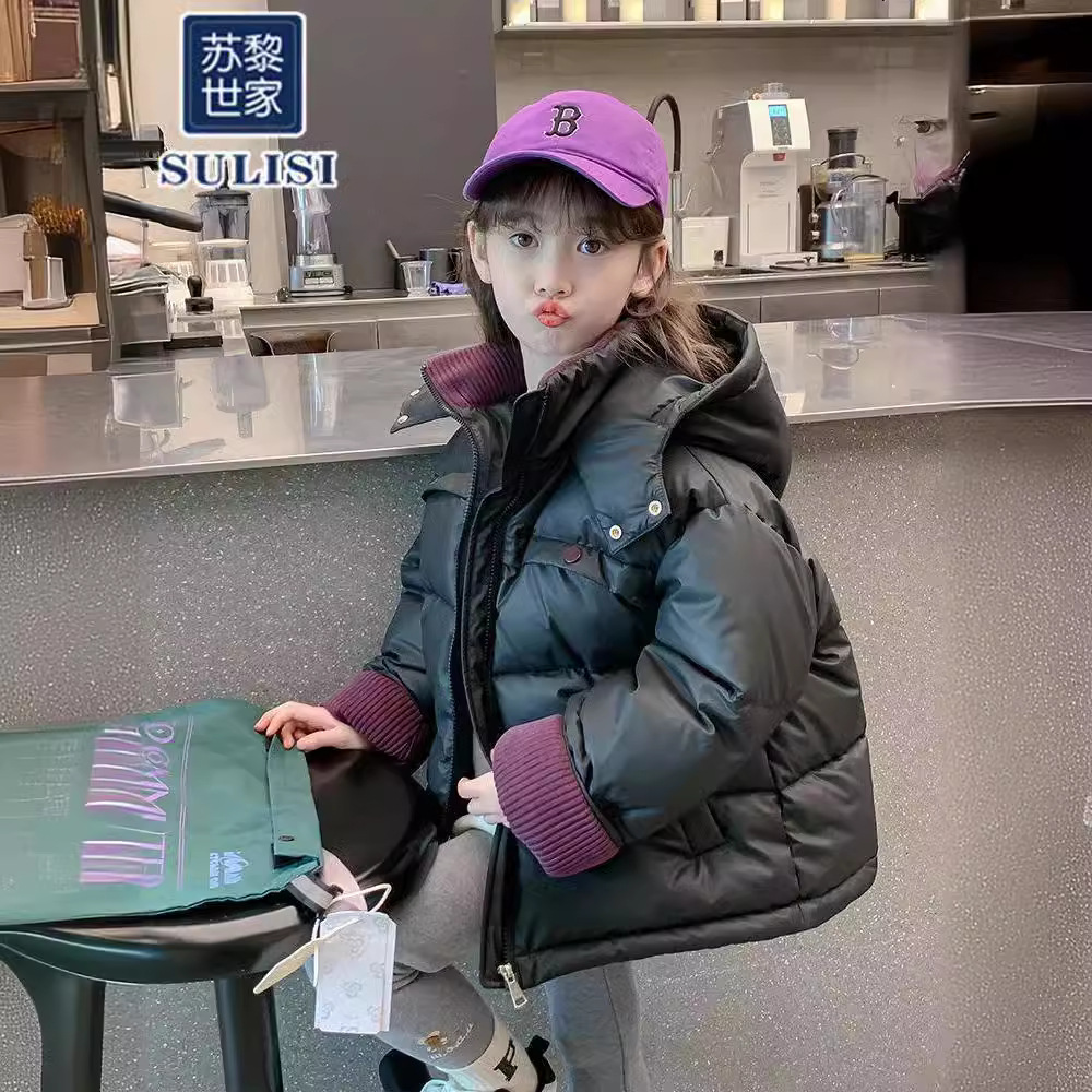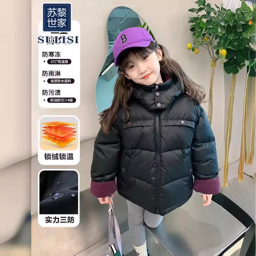 | nameOriginal | Girls' winter cotton-padded clothes cotton and thickening warm windproof hooded down cotton-padded jacket children's medium and large children's pure black winter clothes tide |