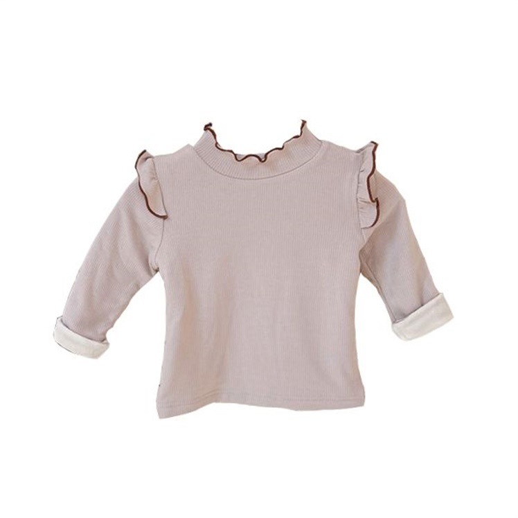 Girls' Winter Half-high Collar Fleece-lined Base Shirt Children's Winter Long-sleeved Top Children's Wear Women's All-match Autumn and Winter 0055