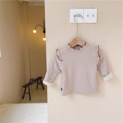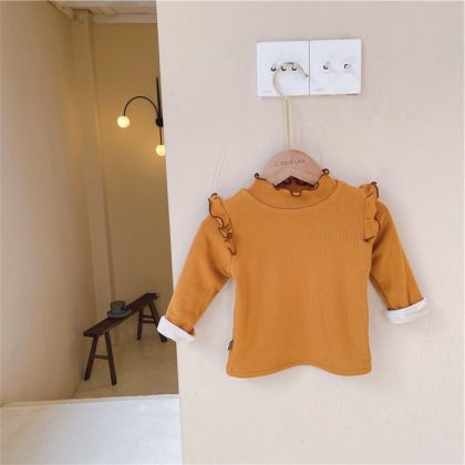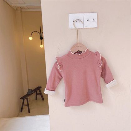 Girls’ Winter Half-high Collar Fleece-lined Base Shirt Children’s Winter Long-sleeved Top Children’s Wear Women’s All-match Autumn and Winter 0055