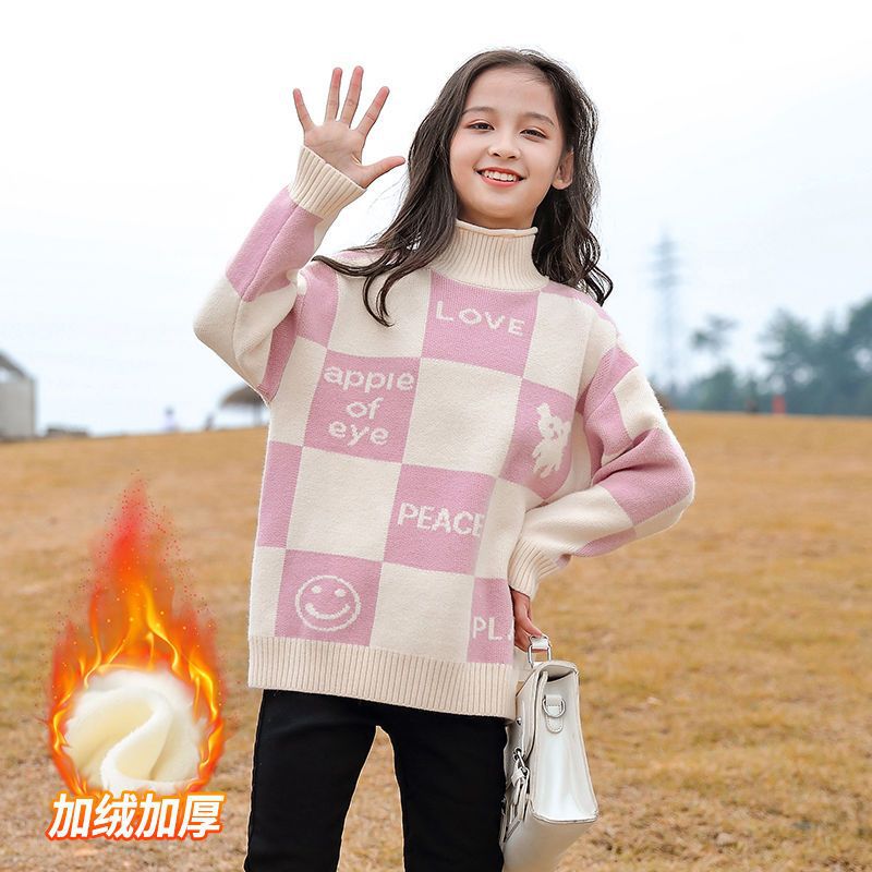 | nameOriginal | Girls' Winter Sweater 2023 New Western Style Middle and Large Children's High Collar Children's Autumn and Winter Thickened Girls Base Clothes fleece-lined |