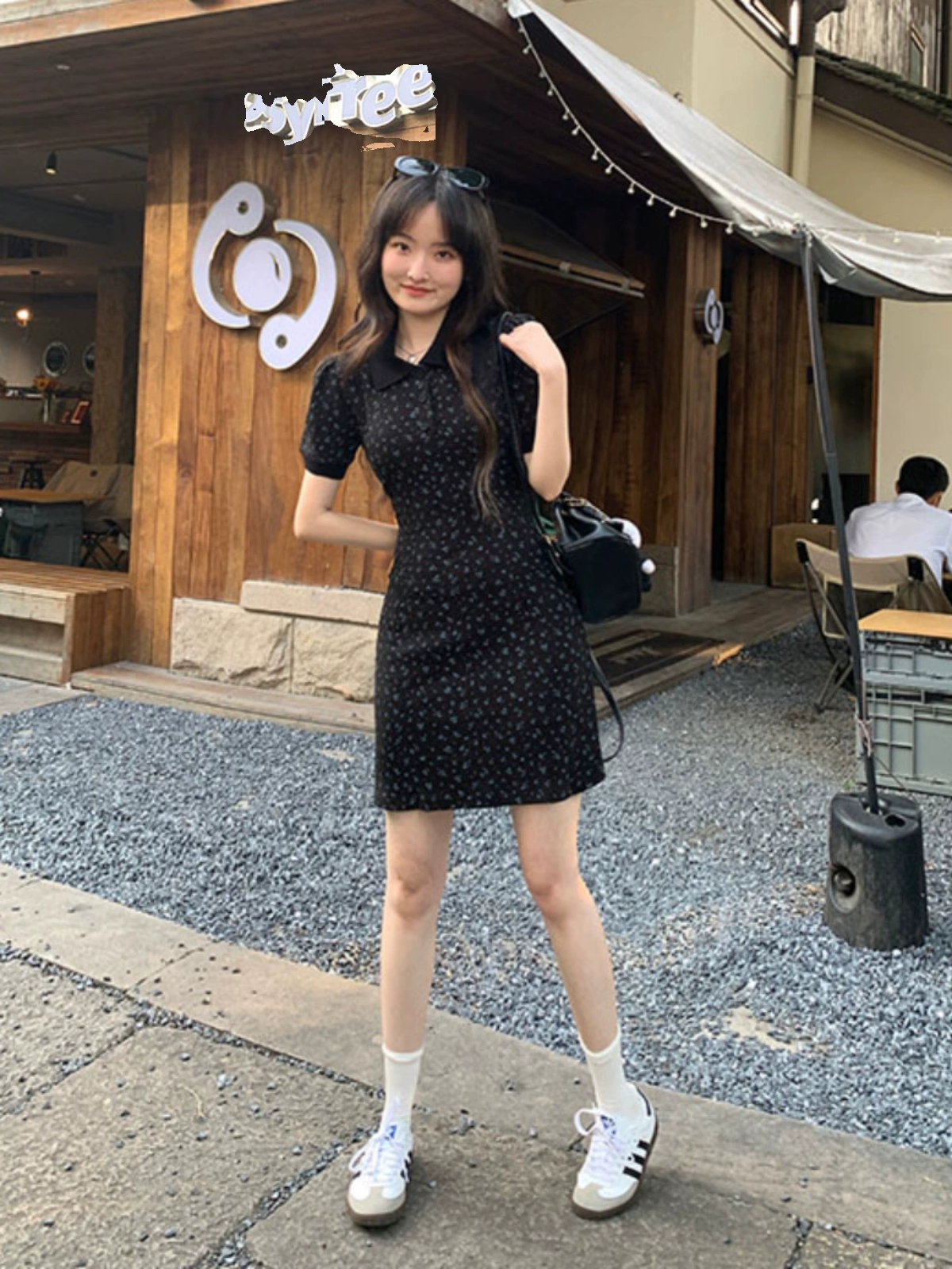 | nameOriginal | Girly Black Lapel Short Sleeve Knitted Dress Women's Summer 2024 New Retro Floral Waist A-Line Skirt |