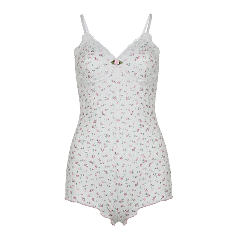 Girly floral lace patchwork bust-shaped V-neck shorts