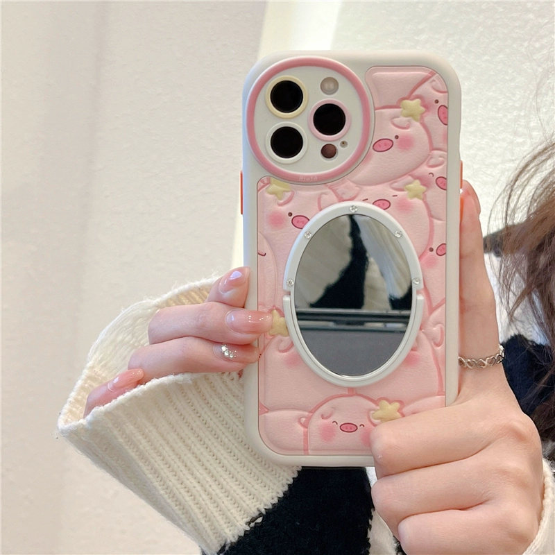 | nameOriginal | Girly pink piggy iphone15 mirror phone case leather 12/11 apple 14promax cute cartoon protective cover 13promax leather pattern suitable for new soft silicone cover 15plus |