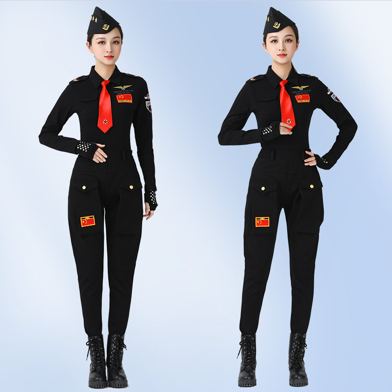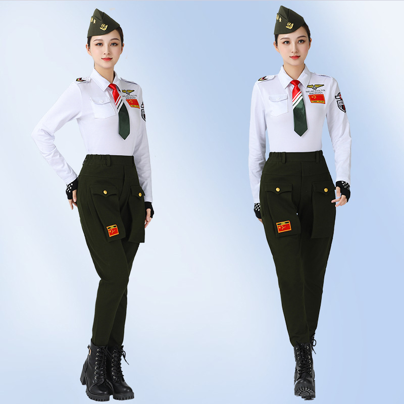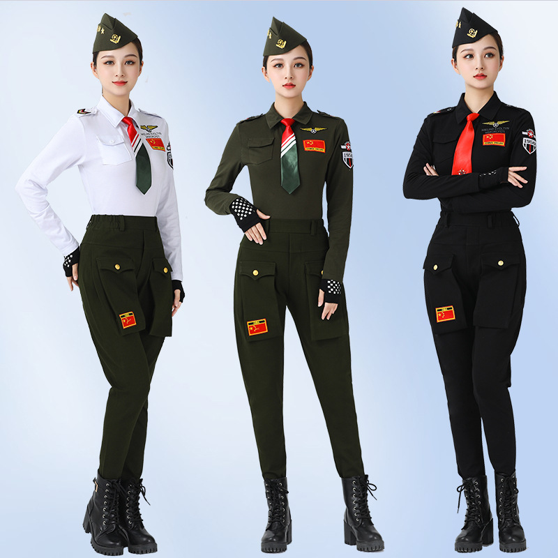 Gitba clothing new long sleeve lapel army green black epaulet square dance costume sailor dance top for women