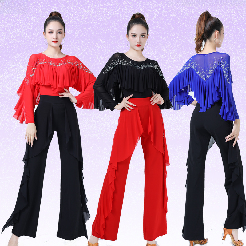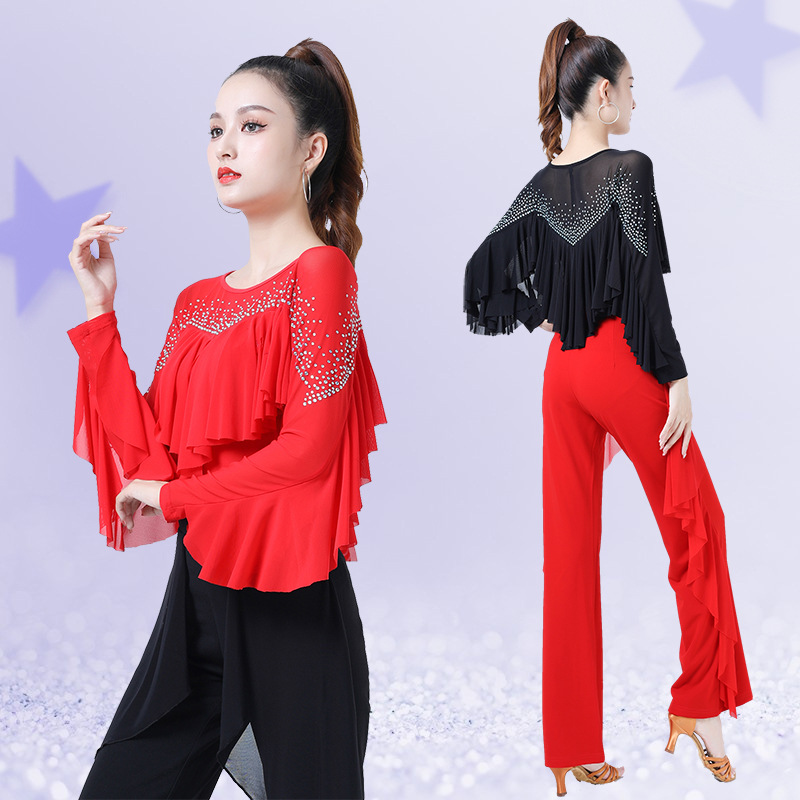 | nameOriginal | Gitba clothing women's new diamond ruffled dance clothes ballroom dance square dance practice clothes Latin Dance Top |