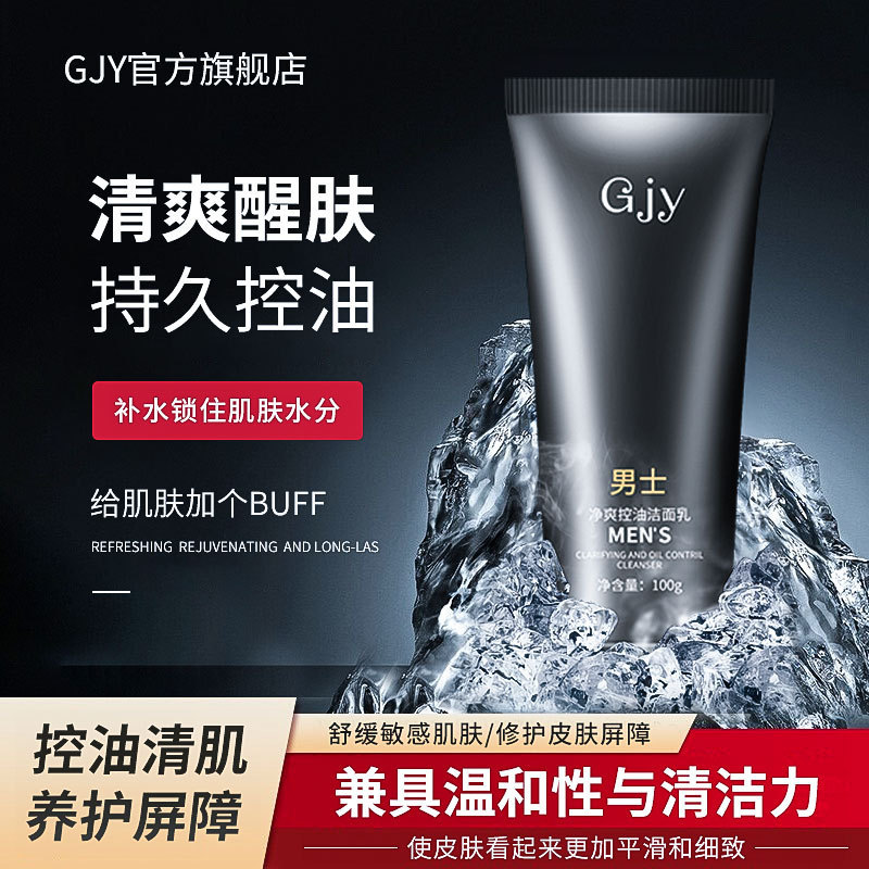 Gjy net cool oil control cleanser moisturizing soothing clean pores blackhead men’s facial cleanser wholesale