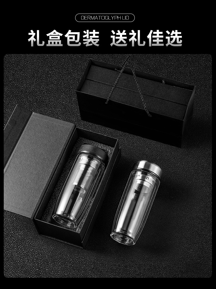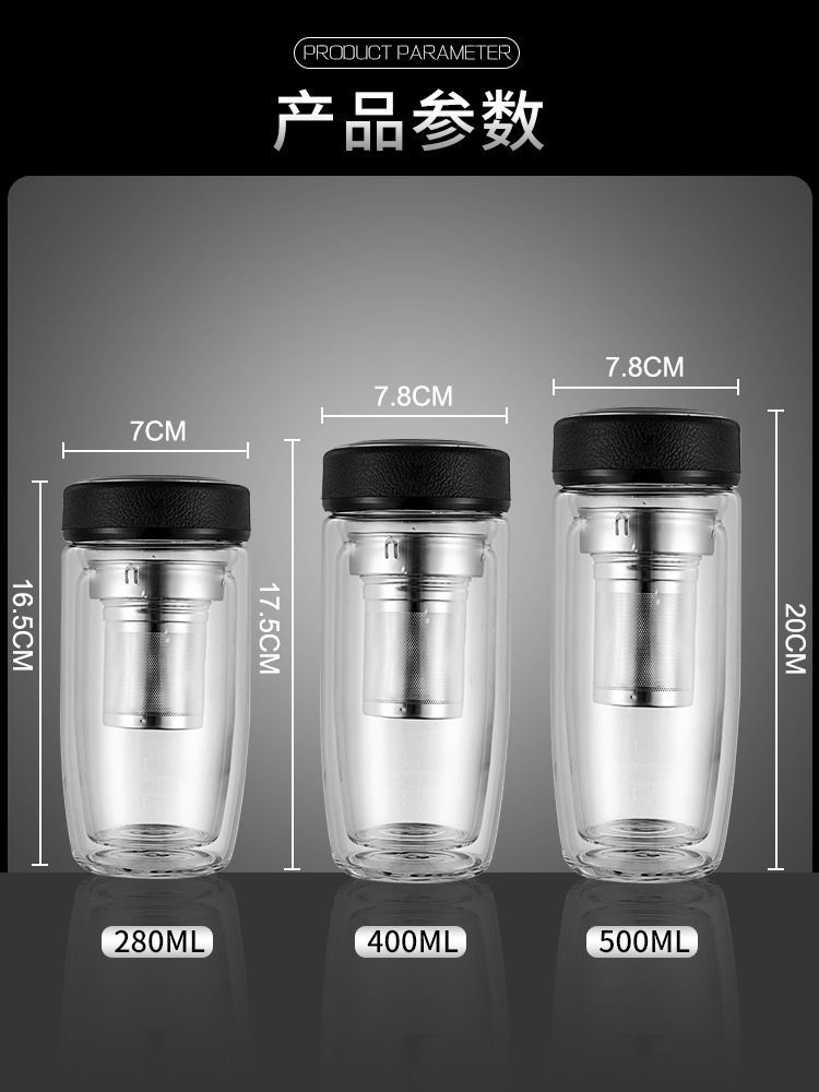Glass double-layer portable men’s tea cup tea separation large capacity water cup single-layer high borosilicate heat insulation one-key