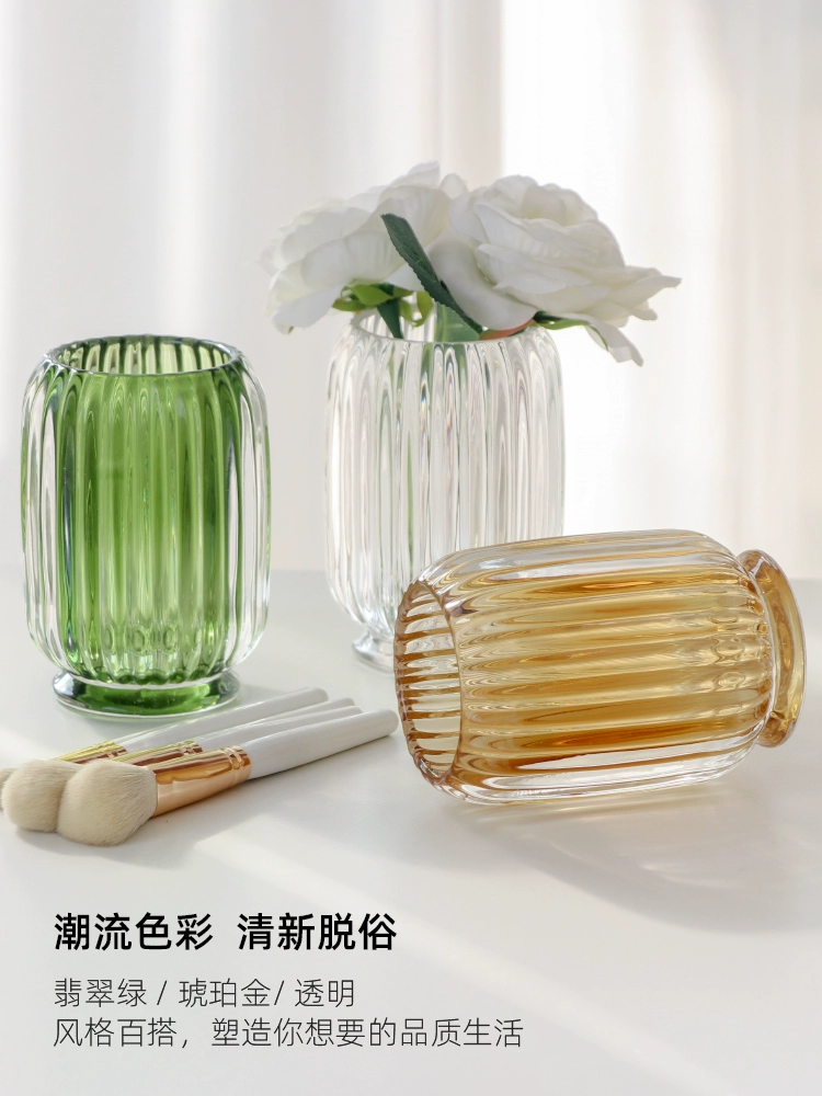 | nameOriginal | Glass makeup brush storage bucket comb storage bucket eyebrow pencil holder high-end Nordic ins light luxury eye shadow brush storage box |