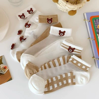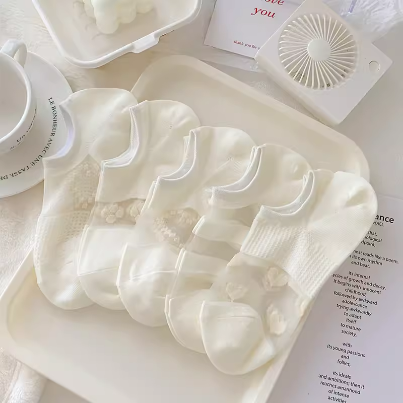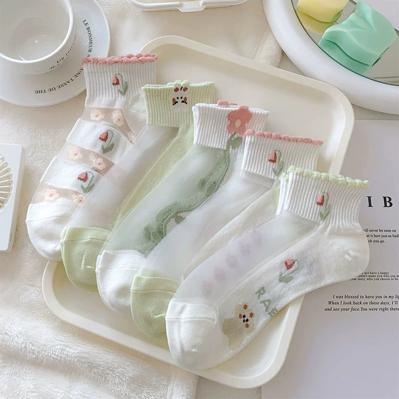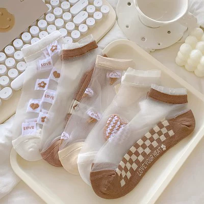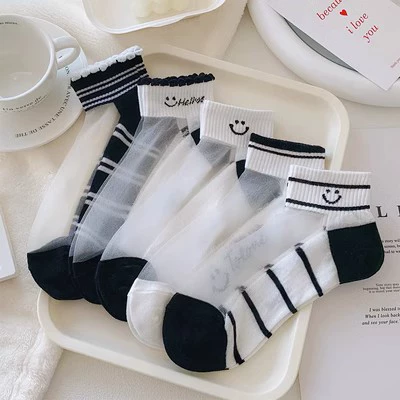 | nameOriginal | Glass silk crystal socks for women ins trendy summer thin transparent socks flower stockings ultra-thin cotton bottom boat socks |