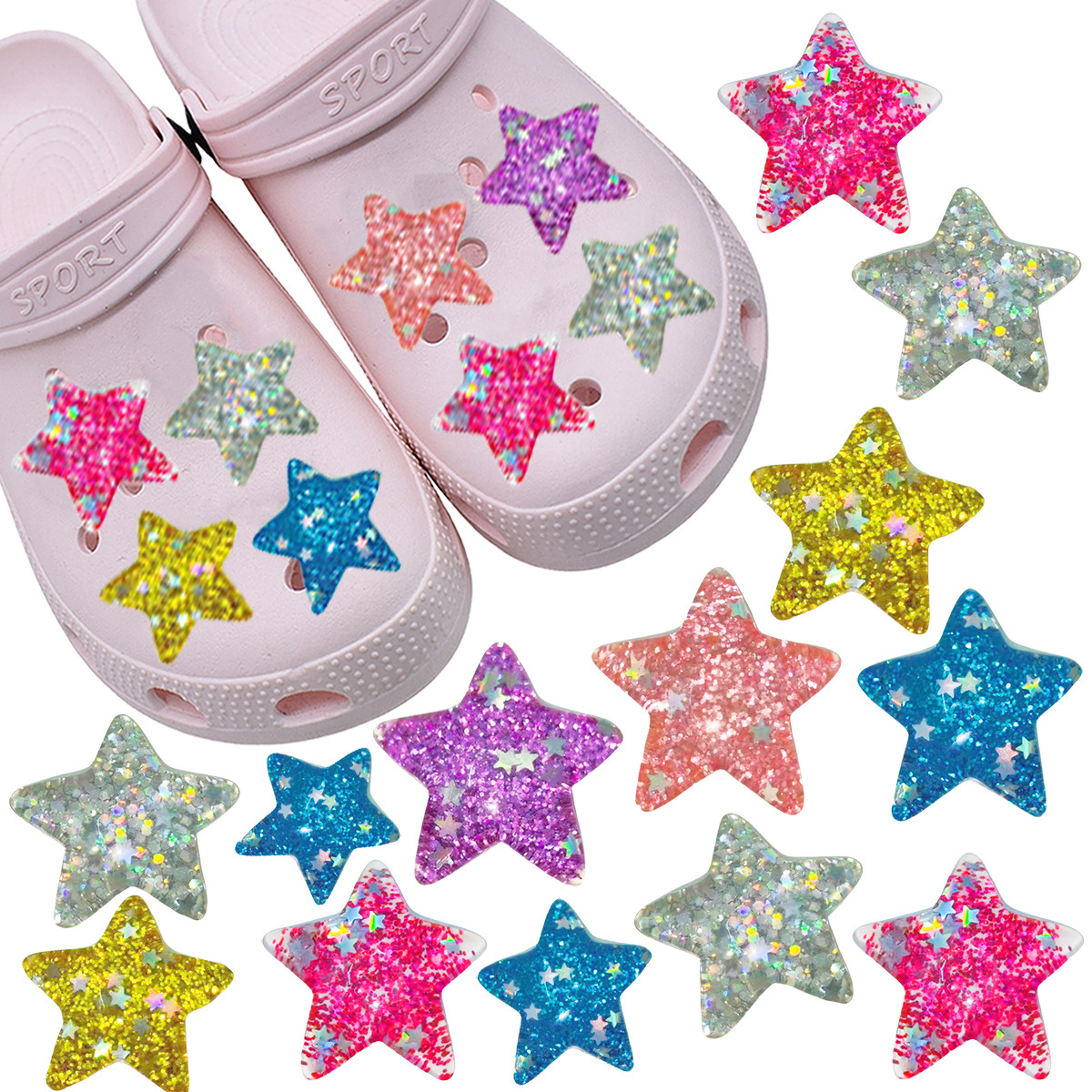 | nameOriginal | Glitter Five-pointed Star Hole Shoes Shoes Flower Shoes Accessories Decorative Buckle DIY Creative Removable Advanced Sense Jewelry |