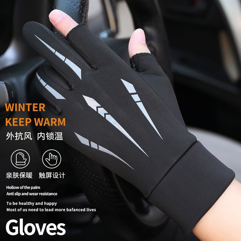 | nameOriginal | Gloves exposed two finger new men's winter riding fleece-lined warm touch screen cold-proof non-slip driving motorcycle winter leakage finger |