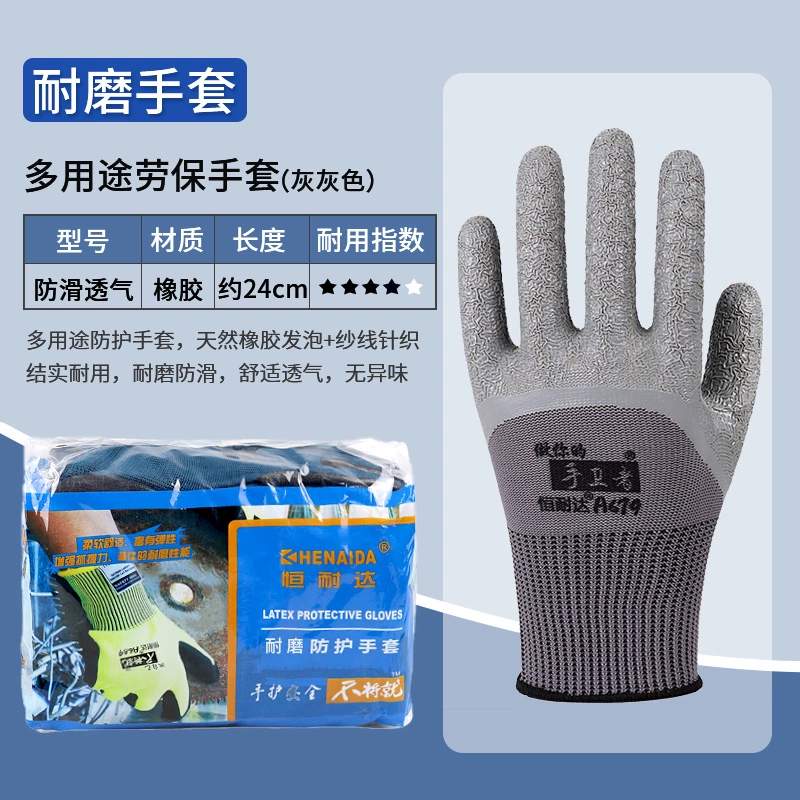 | nameOriginal | Gloves, labor protection, wear-resistant work tires, rubber foam rubber, construction site work, non-slip, breathable, latex-impregnated latex protection |