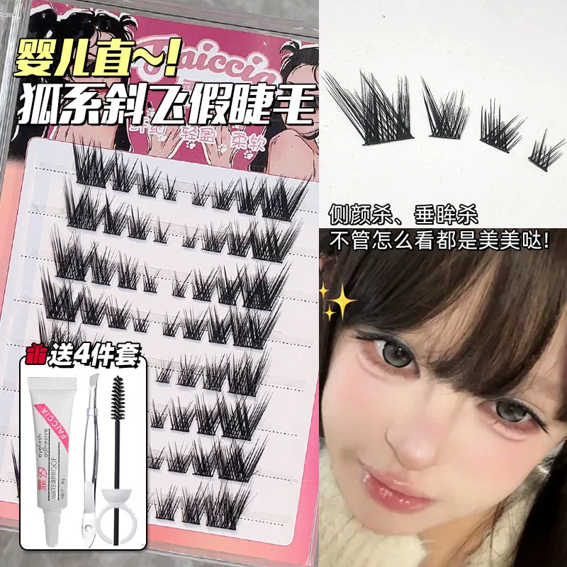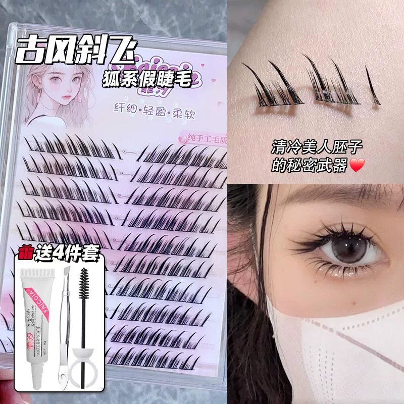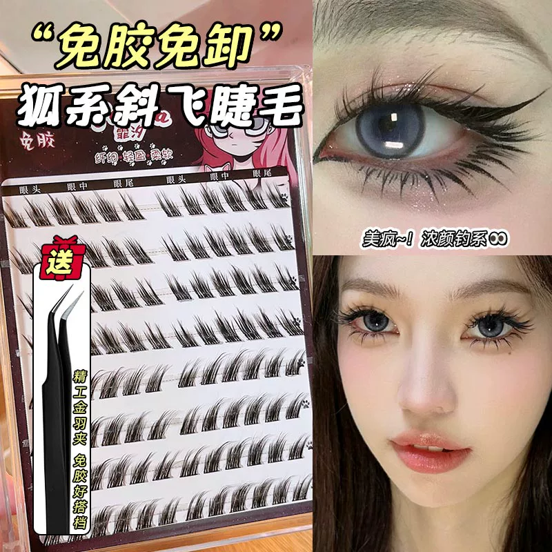 | nameOriginal | Glue-free self-adhesive fox style oblique flying false eyelashes baby straight antique style natural simulation rabbit style fox eye upper and lower eyelashes |