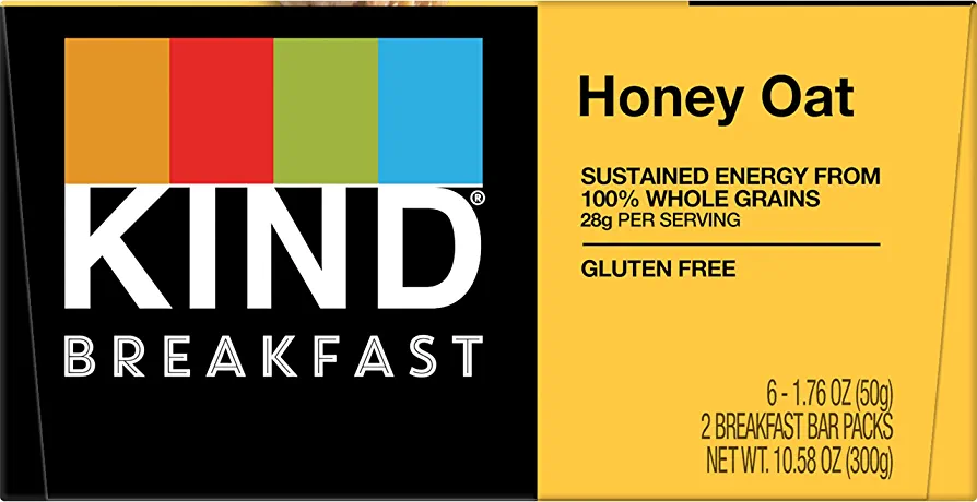 KIND Breakfast, Healthy Snack Bar, Honey Oat, Gluten Free Breakfast Bars, 100% Whole Grains, 1.76 OZ Packs (6 Count)