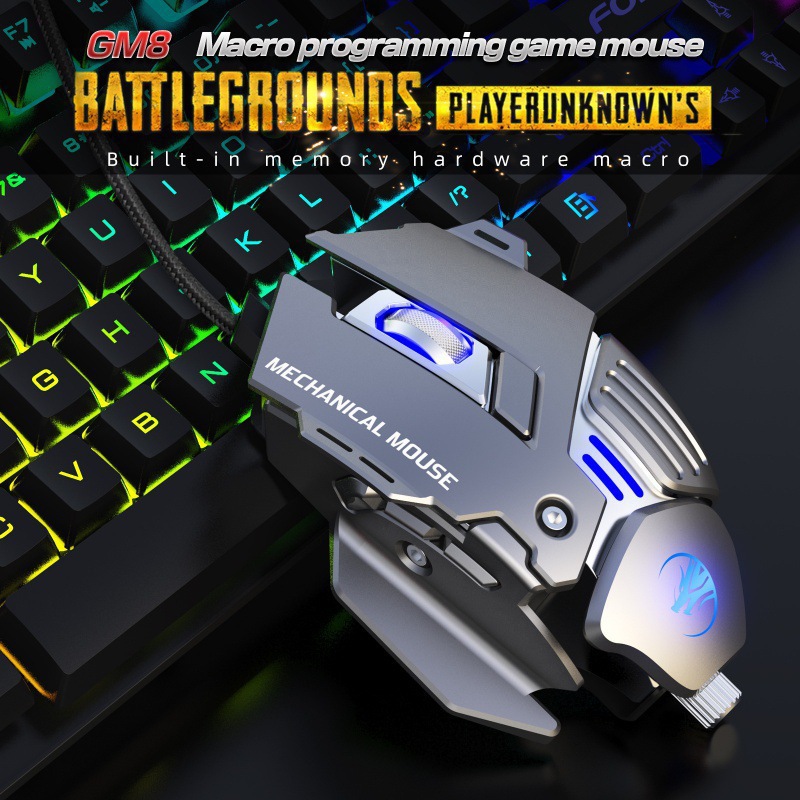 GM8 new wired USB luminous game mouse wholesale Internet cafes computer e-sports eating chicken macro programming machinery