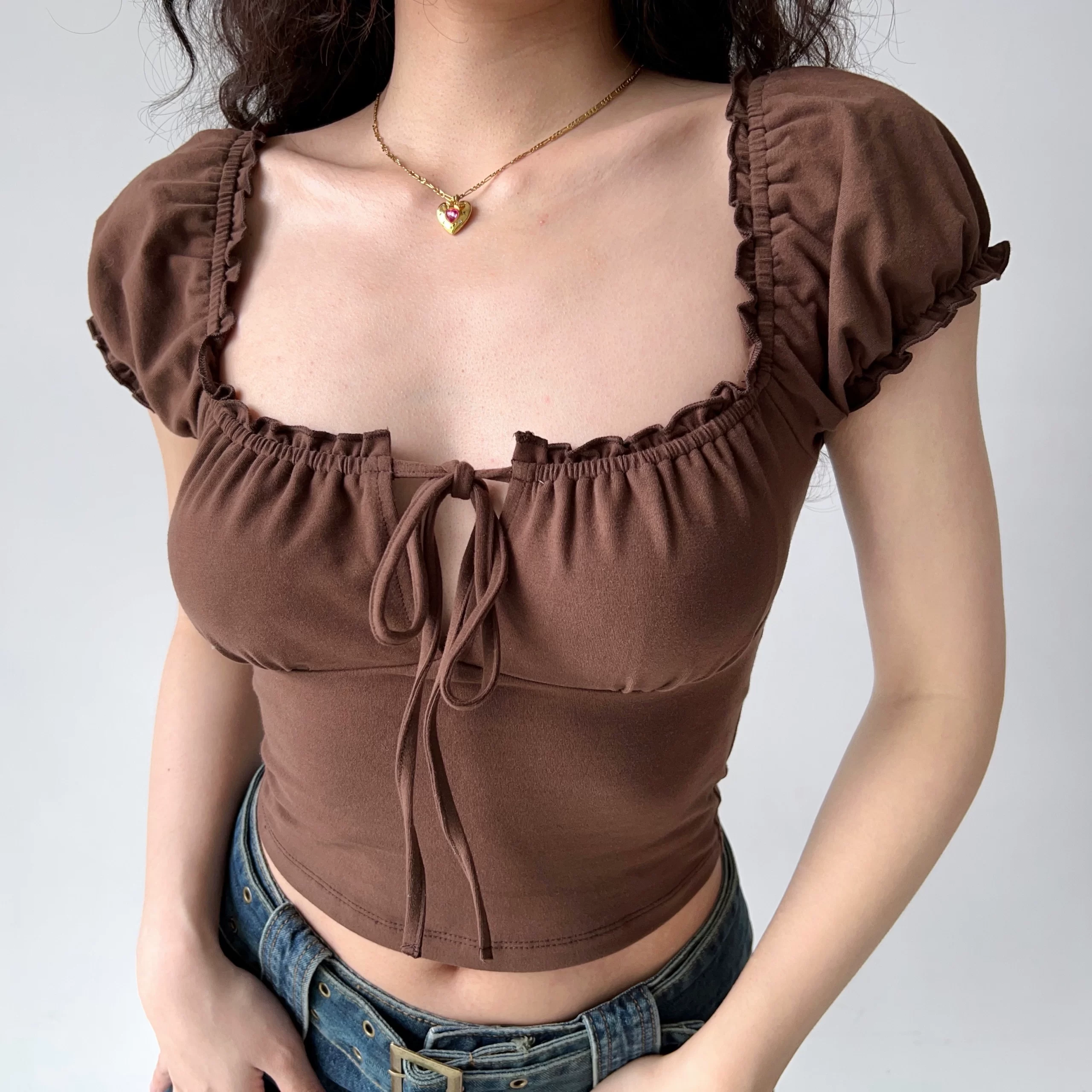 Go Girl Go Lace Up Slim Top Short Sleeve T-Shirt