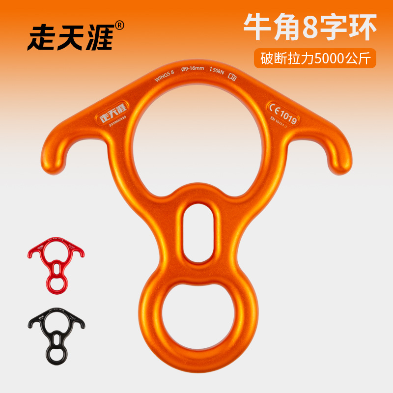 | nameOriginal | Go to the end of the world outdoor mountaineering speed drop bull ear 8-ring descent device aerial work bull horn eight-ring descent device |