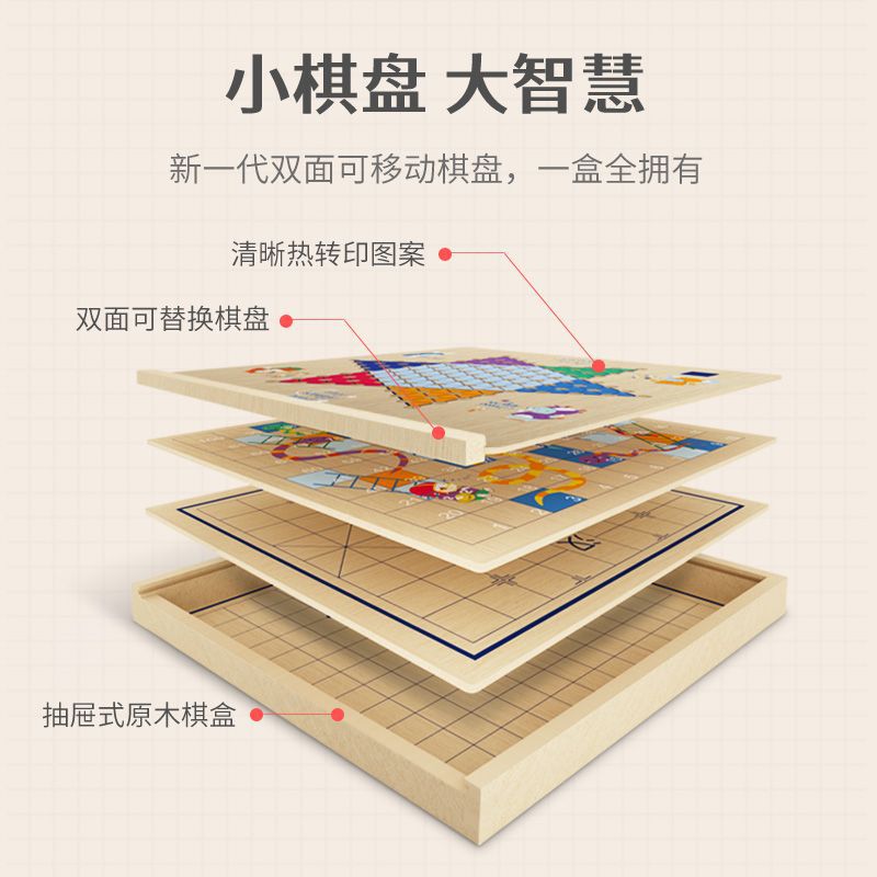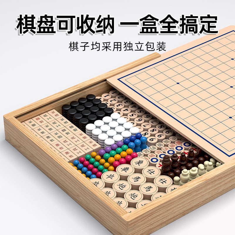 Gobang Flying Chess Checkers Children’s All-in-One Game Chess Educational Toys for Primary School Students Men’s Wooden Chess