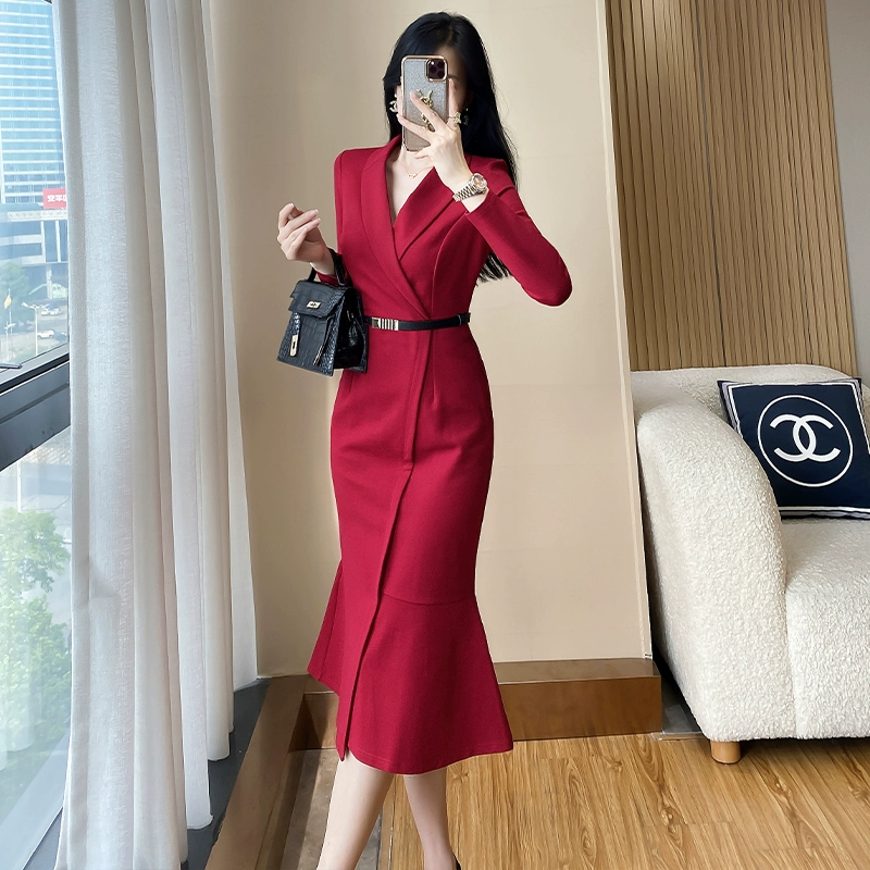 | nameOriginal | Goddess-style dress, smart and slim fit, fishtail business attire |