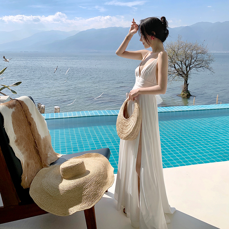| nameOriginal | Goddess style slim fit backless slit beach skirt with suspenders |