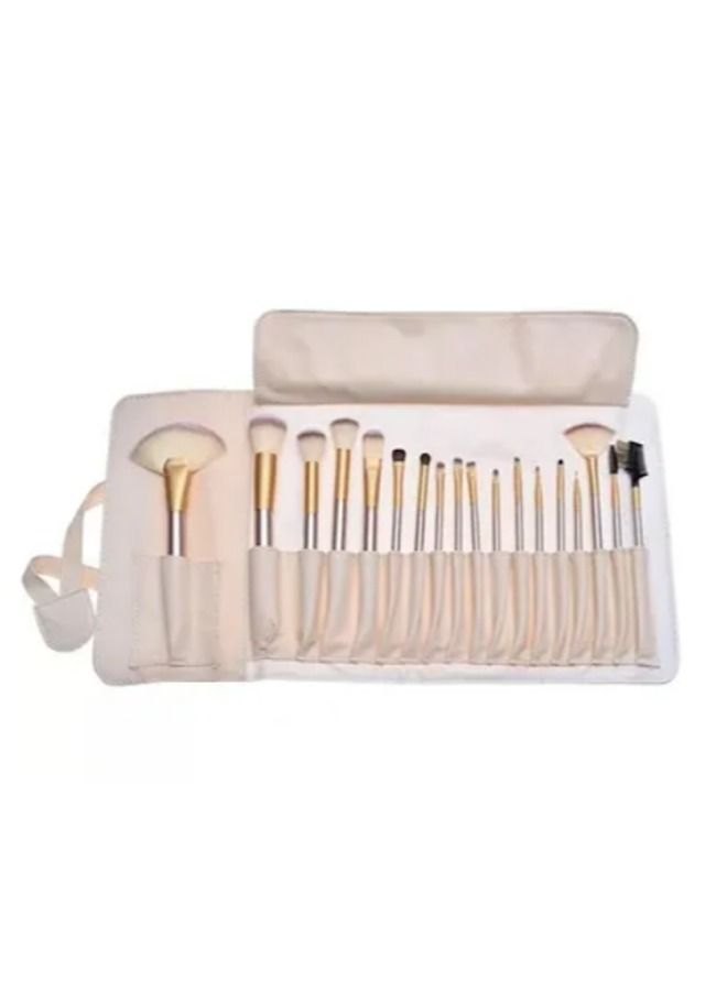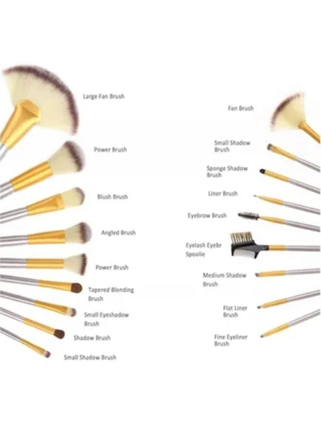 Gold 18-Piece Makeup Brush Set with Pouch Bag.