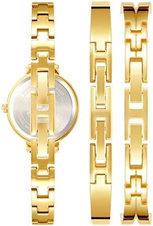 Anne Klein Premium Crystal Accented Bangle Watch and Bracelet 2-Piece Set, Gold