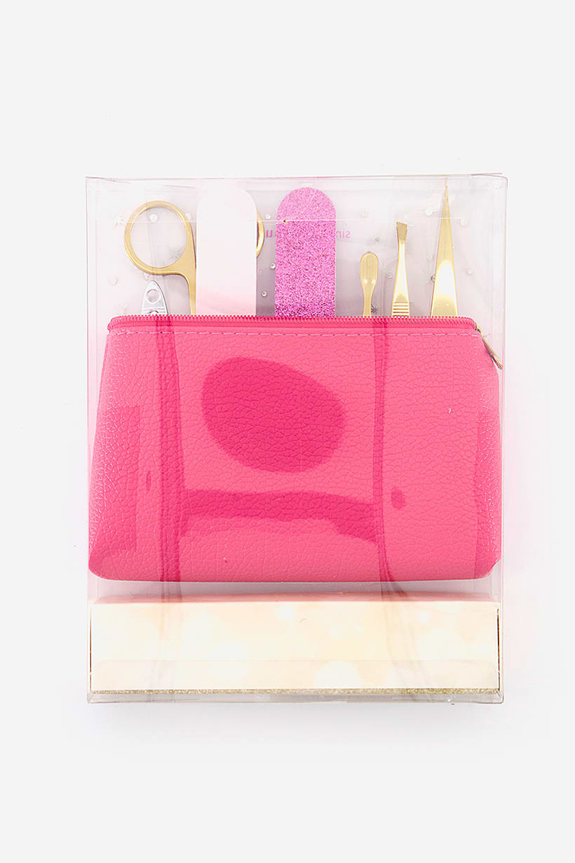 7 Pcs Beauty Grooming Set With Case, Gold and Pink