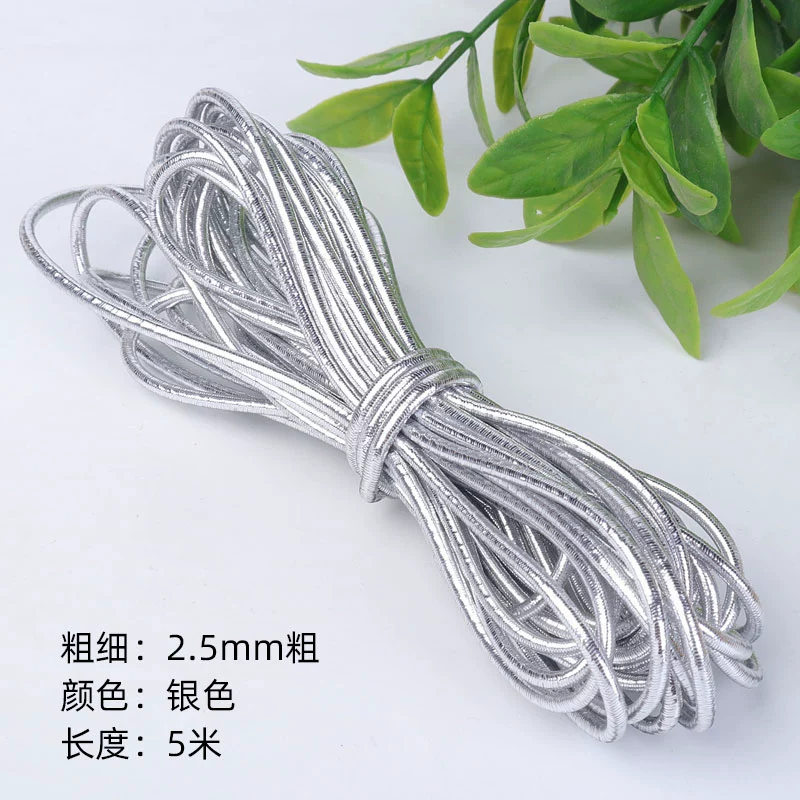 | nameOriginal | Gold and silver round elastic band high-end elastic rope clothing accessories luggage tag card rope 1-2.5mm thick rope |