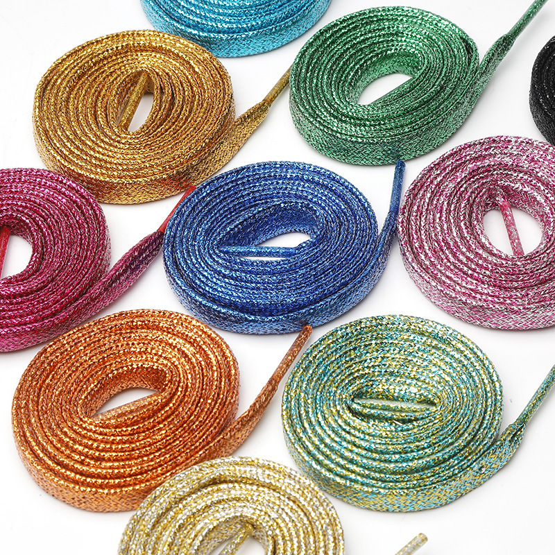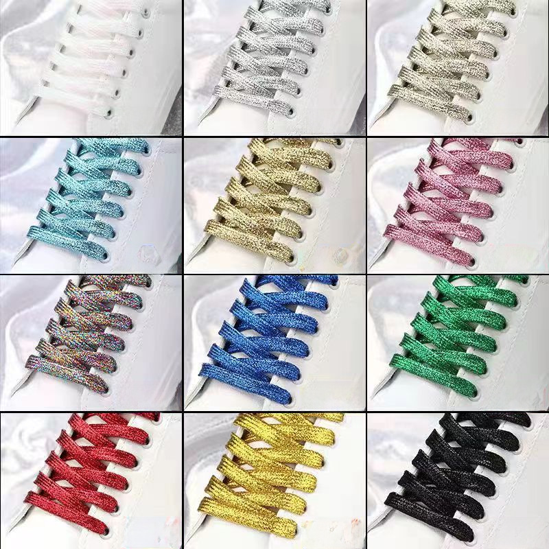 | nameOriginal | "Gold and silver silk" pearlescent bright polyester flat shoelaces fit board shoes canvas shoes sneaker pants rope |