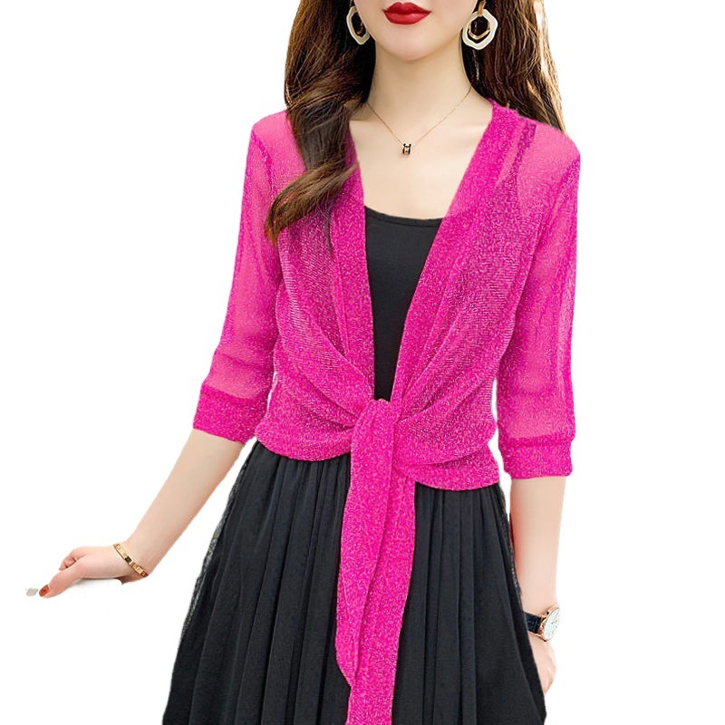 | nameOriginal | Gold and silver silk shawl women's summer fairy mesh small coat outer wear simple cardigan short sleeve Korean style girls' small shawl |