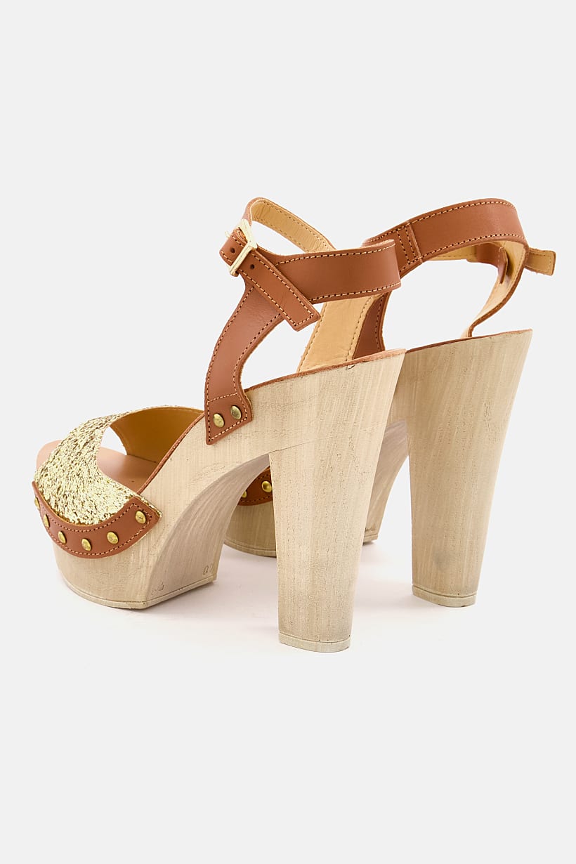 | descriptionOriginal | Heel Height : 5.5" / 14 cm, Heel Style : Block heel, Ideal For : Women, Shoe Closure : Adjustable buckle closure, Sole Material : Wooden Sole, Toe Style : Open toe, Disclaimer : Product color may slightly vary due to photographic lighting sources or your monitor settings., Occasion : Casual, Shoe Material : Textile, Color Family : Gold, Brown, |