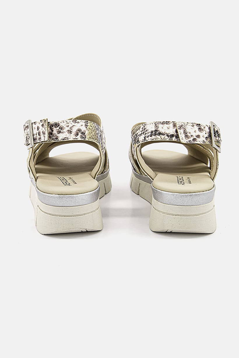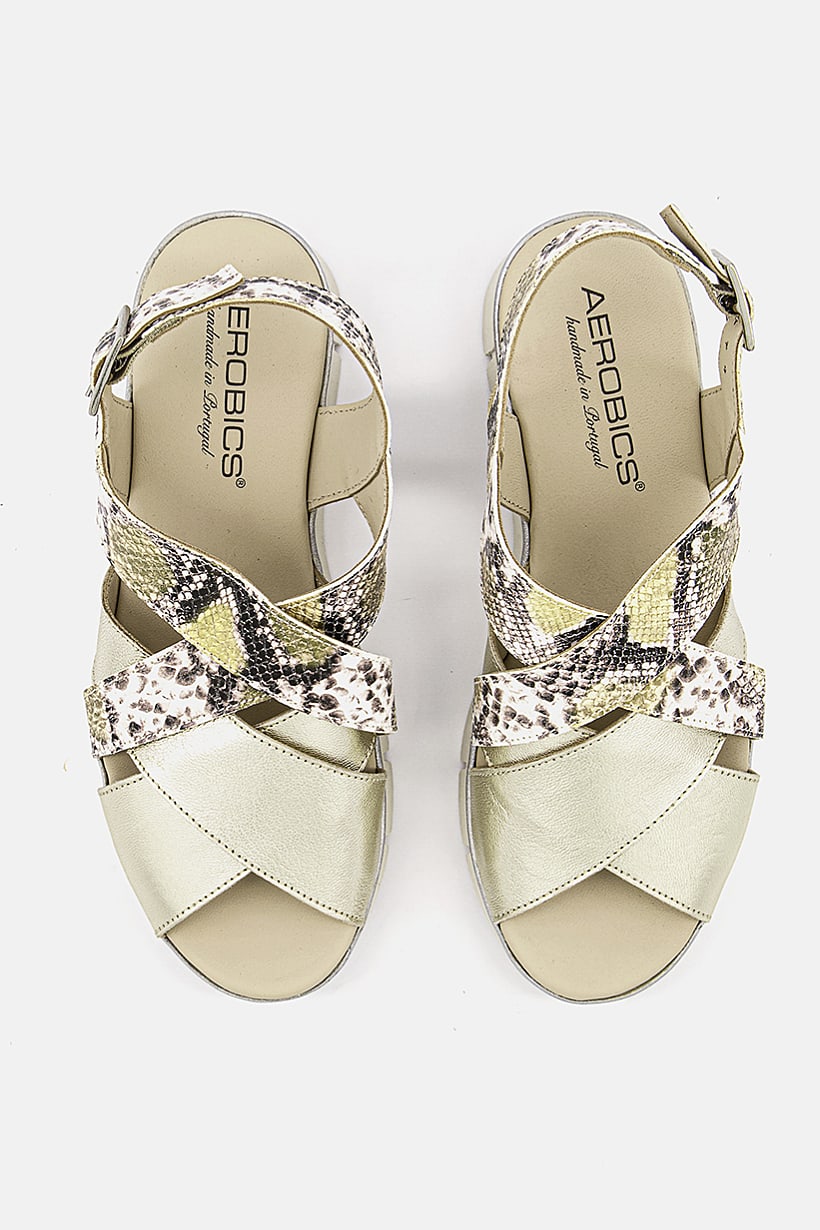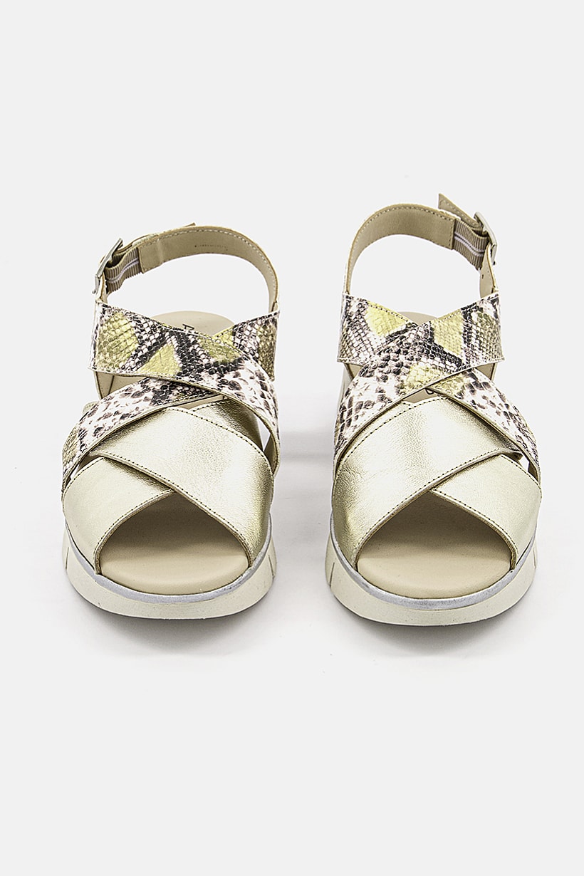 Gold Combo Snake Print Sandals with Adjustable Buckle for Women.