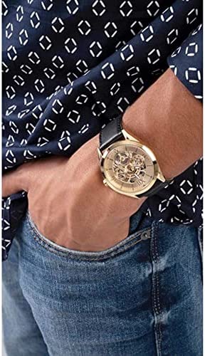 Introducing the GUESS Men’s 42mm Tailor Gold Dial Genuine Leather Analog Watch – GW0389G2, the perfect accessory for the modern man who values style and functionality. This watch features a stunning gold dial that is sure to catch the eye, with easy-to-read hour markers and hands that make telling time a breeze. The genuine leather strap is both comfortable and durable, ensuring that this watch will be a staple in your wardrobe for years to come. With its sleek and sophisticated design, this watch is perfect for any occasion, whether you’re dressing up for a formal event or keeping it casual on the weekends. Don’t settle for anything less than the best – choose the GUESS Men’s 42mm Tailor Gold Dial Genuine Leather Analog Watch for a timepiece that is both stylish and reliable.