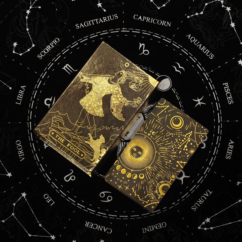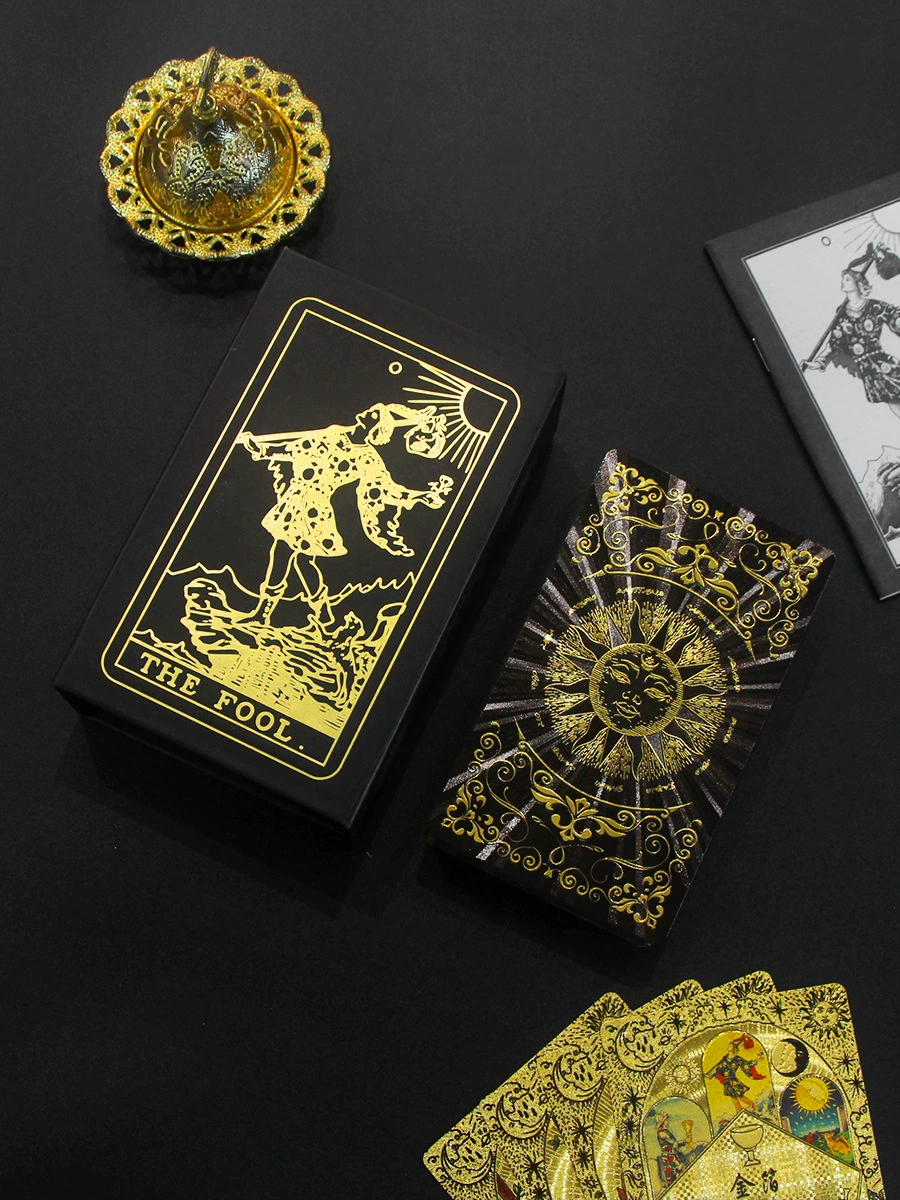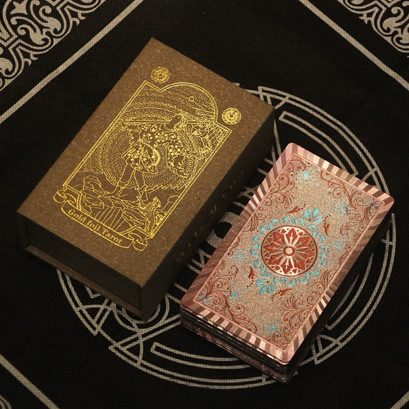 | nameOriginal | Gold foil tarot cards, rose gold tarot cards, color printed tarot cards, plastic PET waterproof tarot cards, instructions |