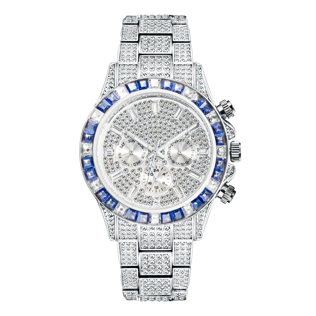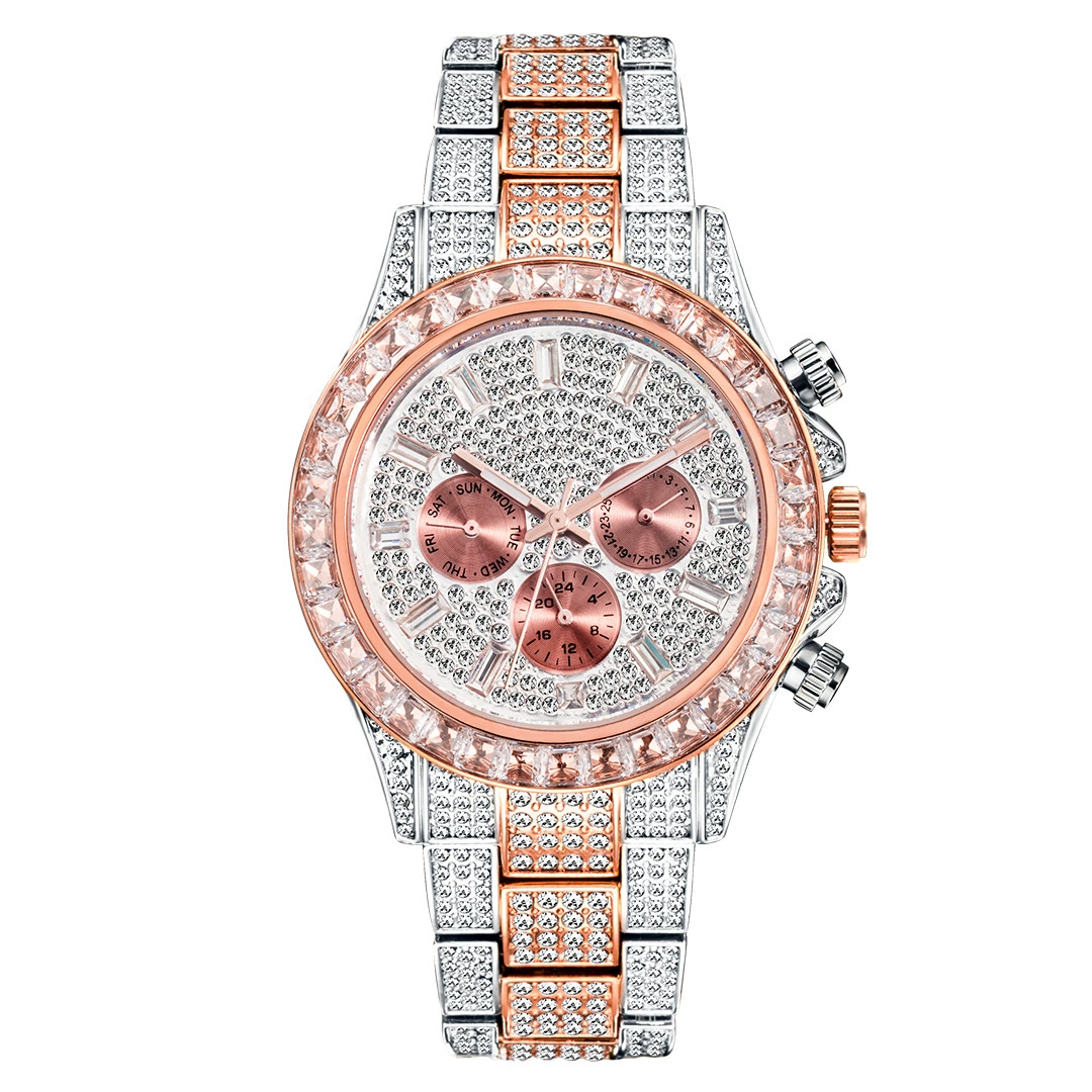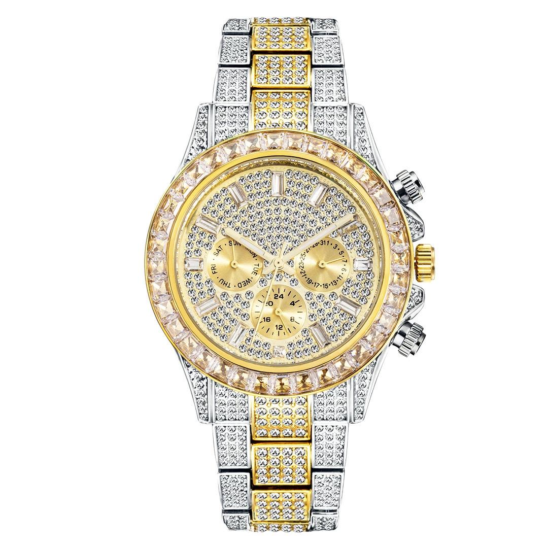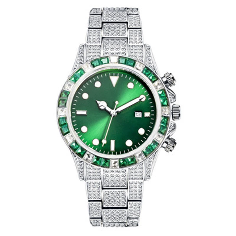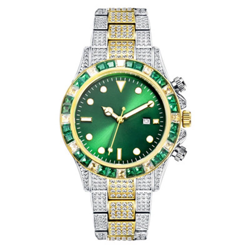 Gold green hip-hop baby’s breath watch for men, luxury and cool diamond-filled imported movement waterproof luminous quartz watch