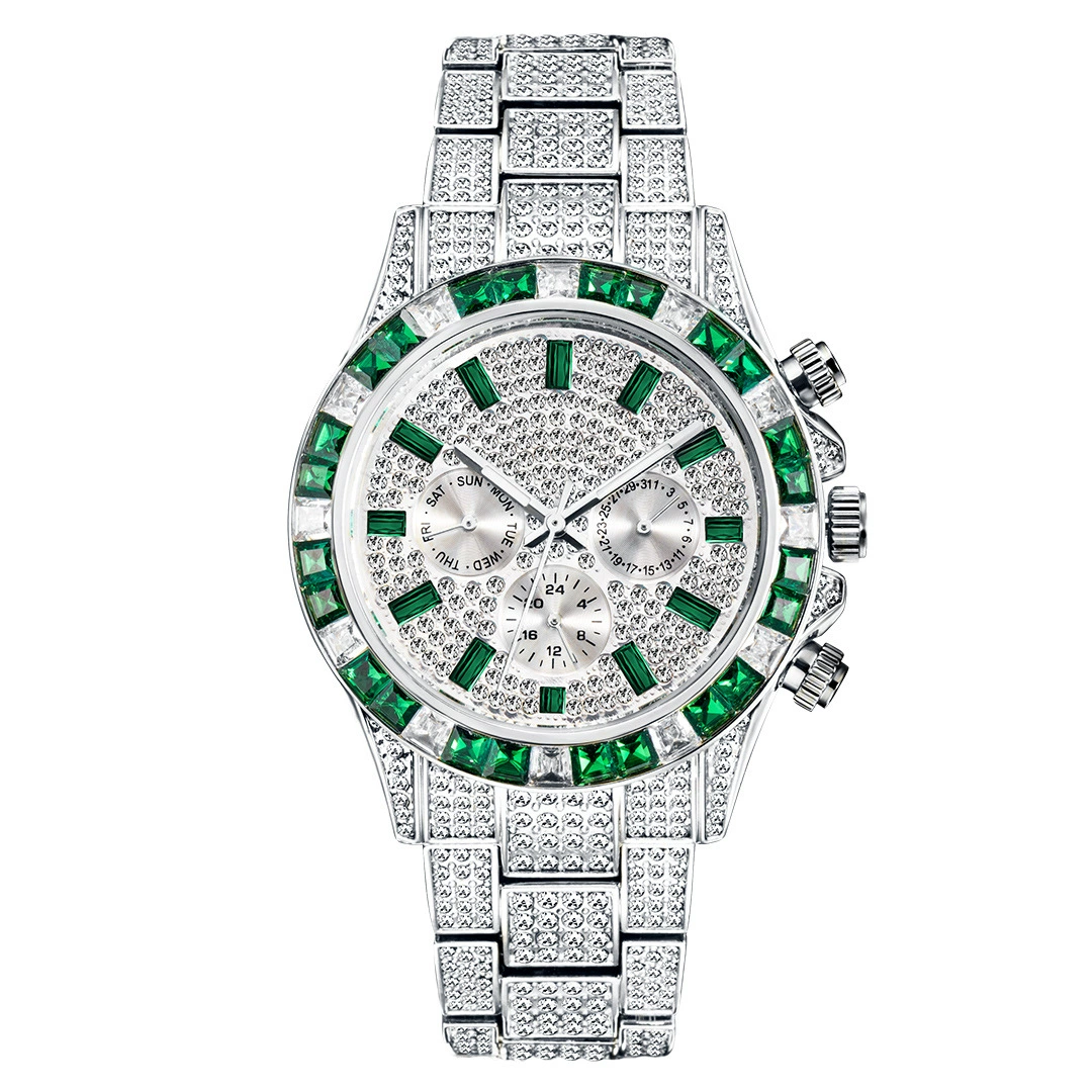Gold green hip-hop baby's breath watch for men, luxury and cool diamond-filled imported movement waterproof luminous quartz watch