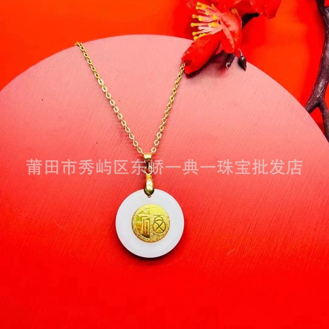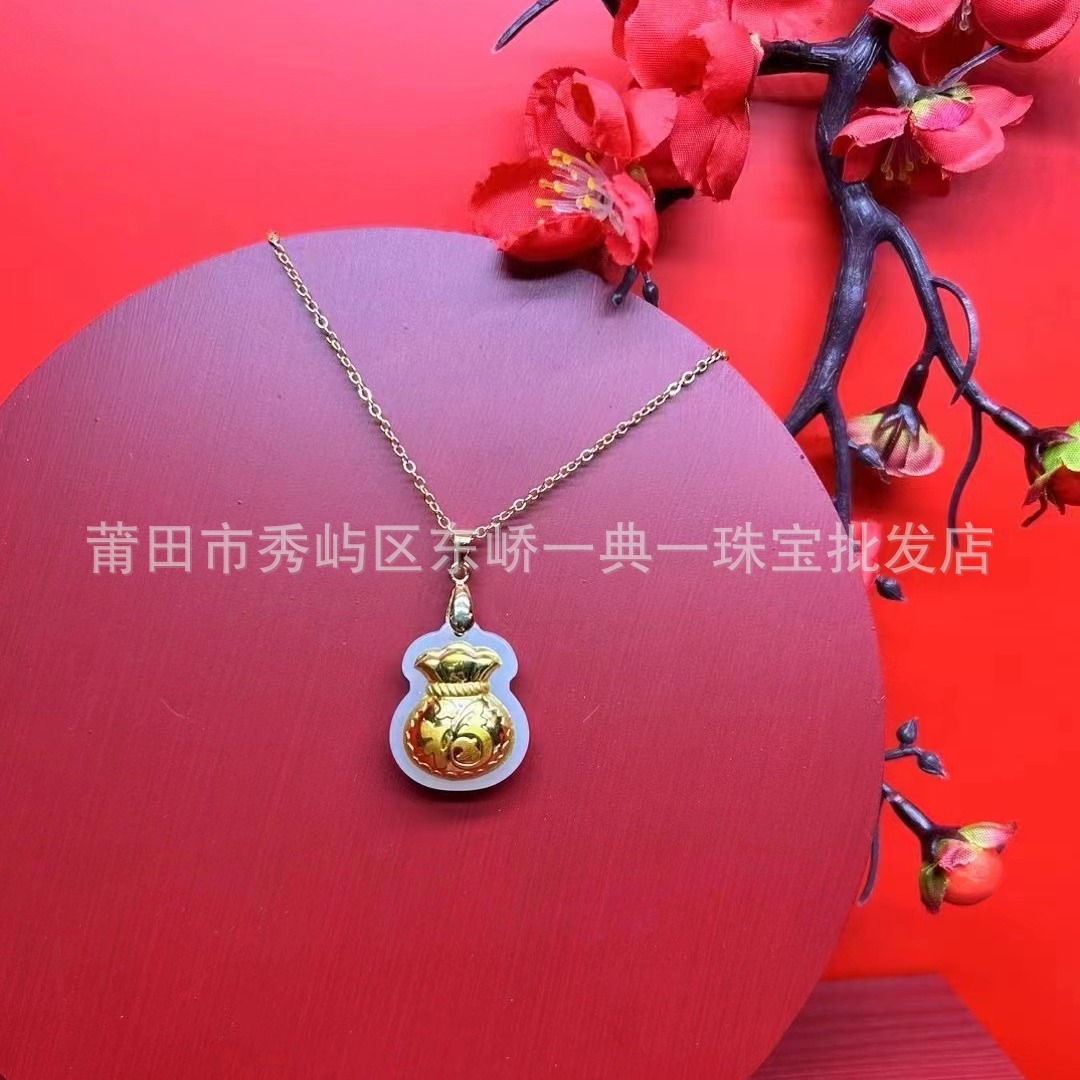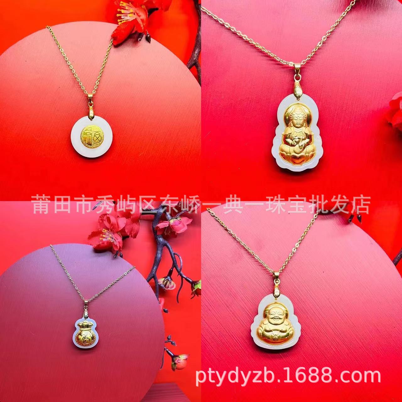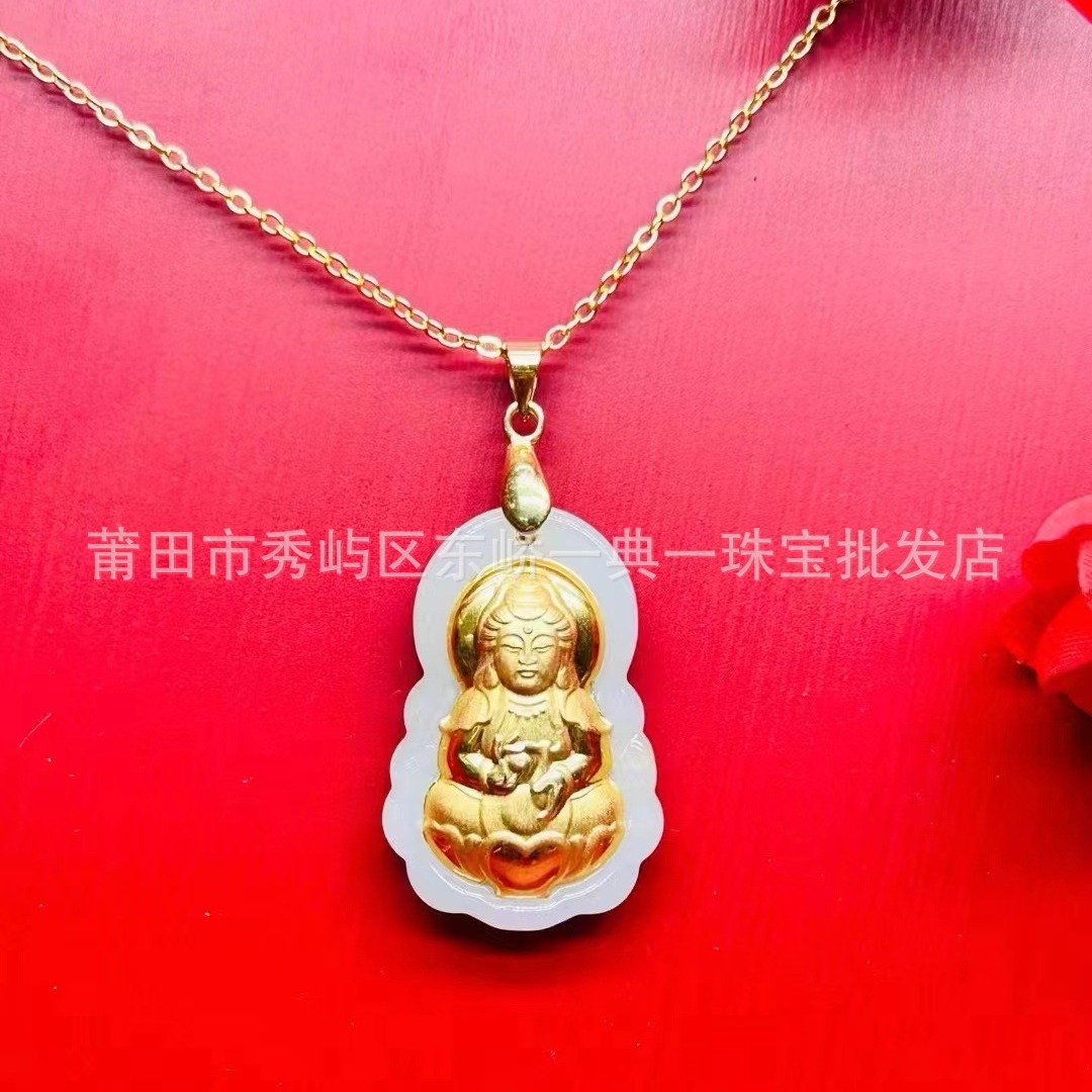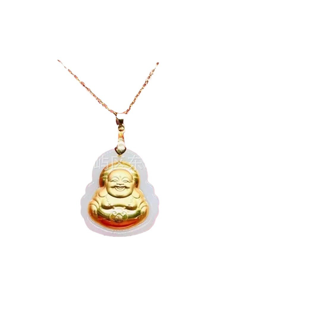 | nameOriginal | Gold inlaid jade imitation Hotan white jade blessing pendant Guanyin Maitreya laughing Buddha bag live gift wholesale |