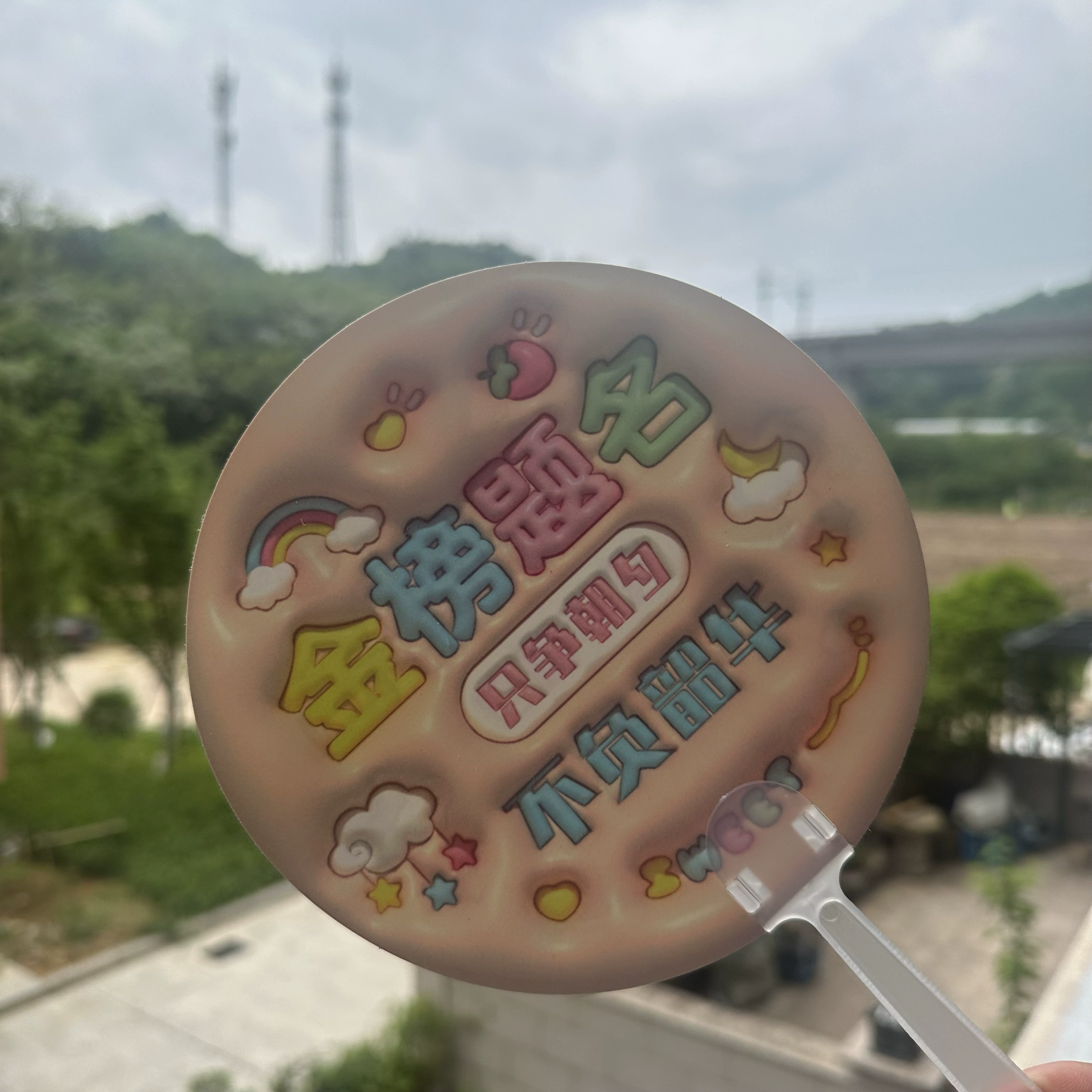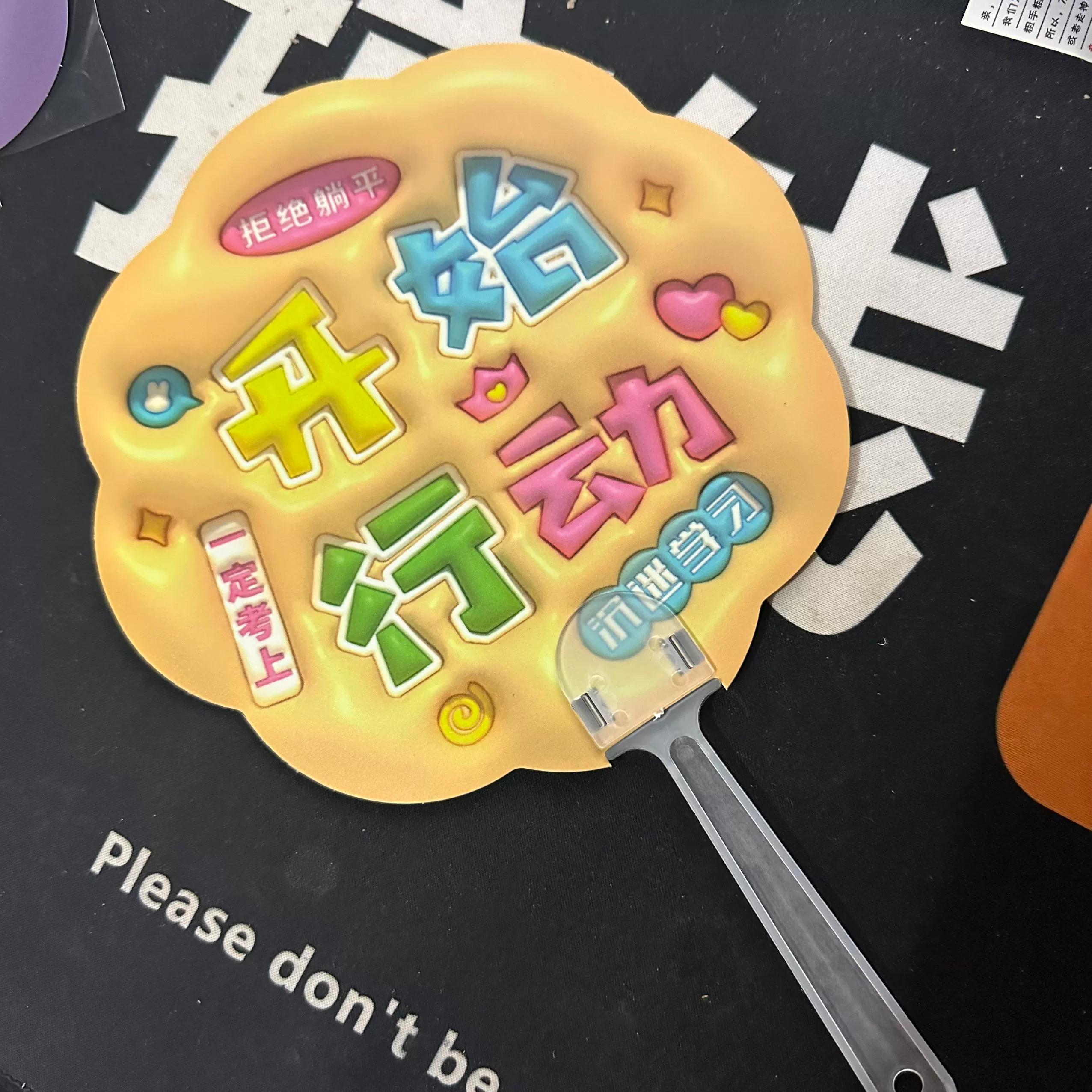 | nameOriginal | Gold list title inspirational text fan children's inflatable small round fan summer cool hand fan student graduation prize |