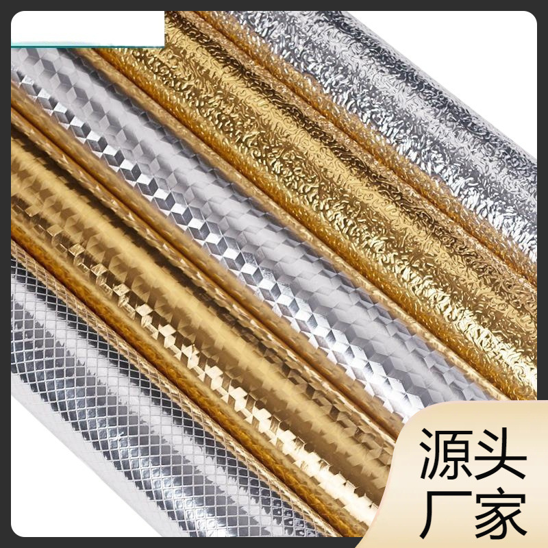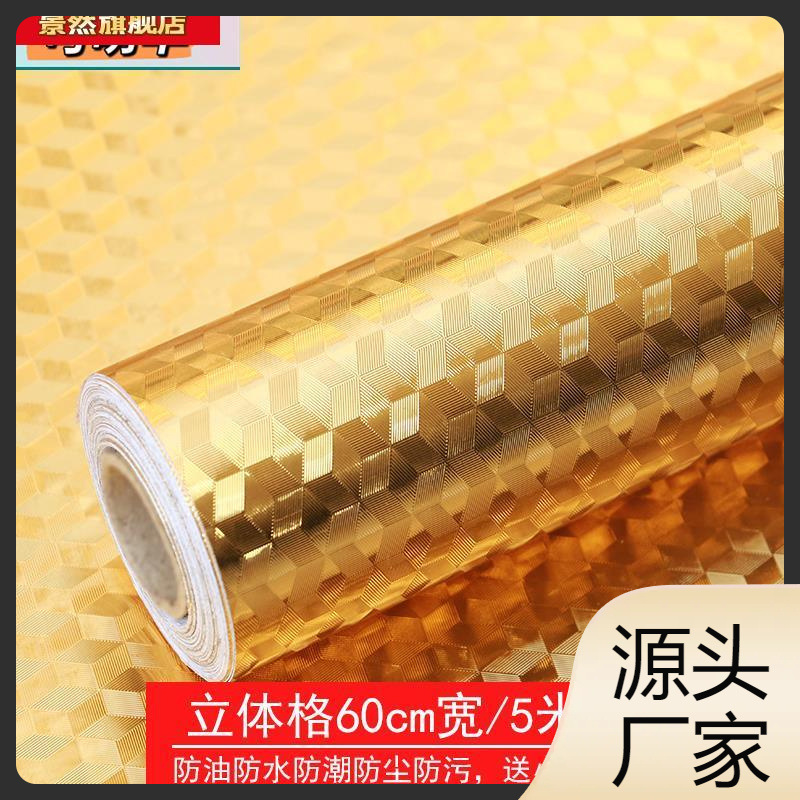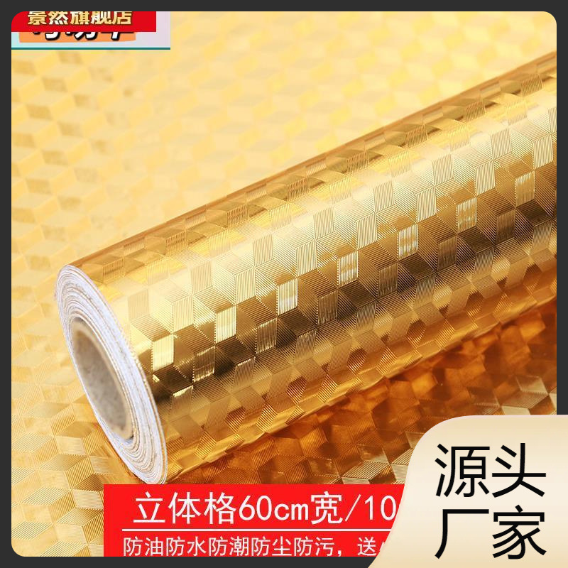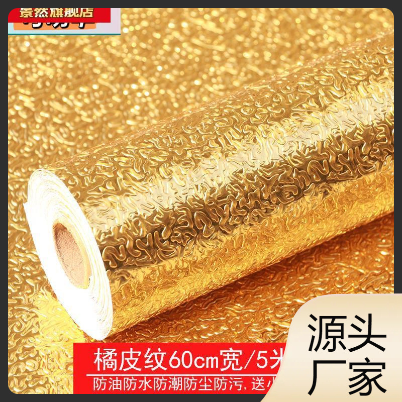 Gold Paper Tin Foil Paper Large Sheet Tin Paper Oil-proof Waterproof High Temperature Resistant Kitchen Cabinet Moisture-proof Pad Gold Sticker Self-adhesive