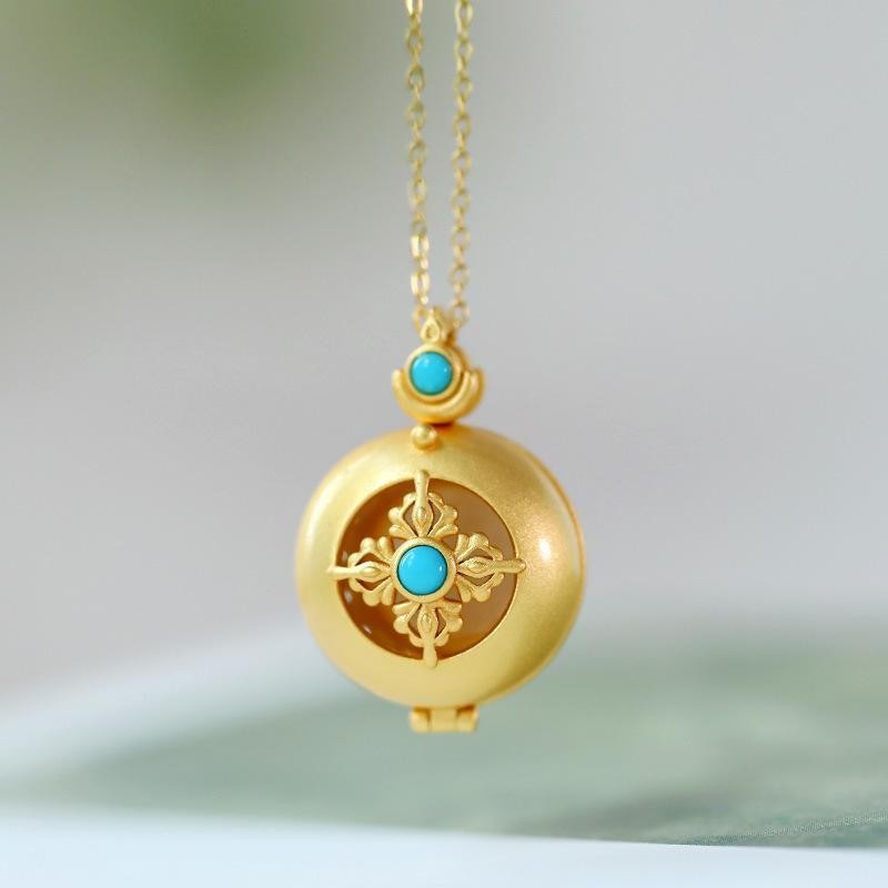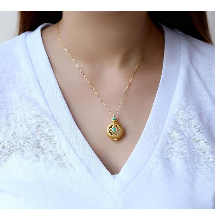 | nameOriginal | Gold-plated clavicle necklace inlaid white shell imitation turquoise box female pendant small elegant jewelry gift |
