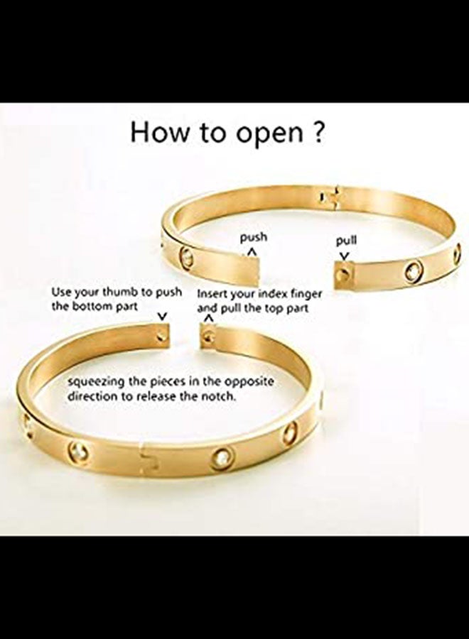 Introducing our stunning 18K Gold Plated Cubic Zirconia Bangle Bracelet, the perfect accessory to elevate any outfit. Crafted with high-quality materials, this bangle bracelet features a sleek and elegant design that is sure to catch the eye. The 18K gold plating adds a touch of luxury, while the sparkling cubic zirconia stones add a touch of glamour and sophistication. The bangle bracelet is easy to wear and comfortable on the wrist, making it perfect for everyday wear or special occasions. Whether you’re dressing up for a night out or adding a touch of elegance to your everyday look, this bangle bracelet is the perfect choice. Order yours today and add a touch of luxury to your jewelry collection!